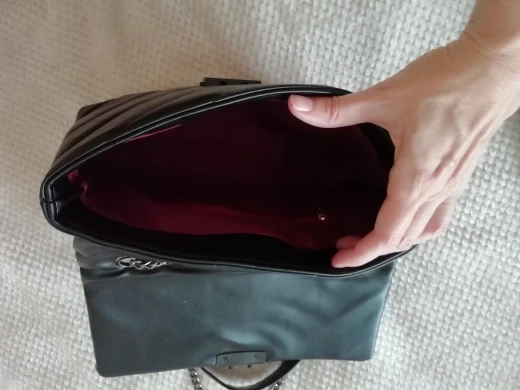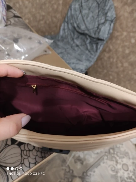 Сумка хорошая, выглядит дорого. Сначала не поняла прикол застежки, потому что только с одной стороны защелкивается, но это прям незначительно. Запаха нет. Внутри красный подклад и один карман на замке. Пришла быстро