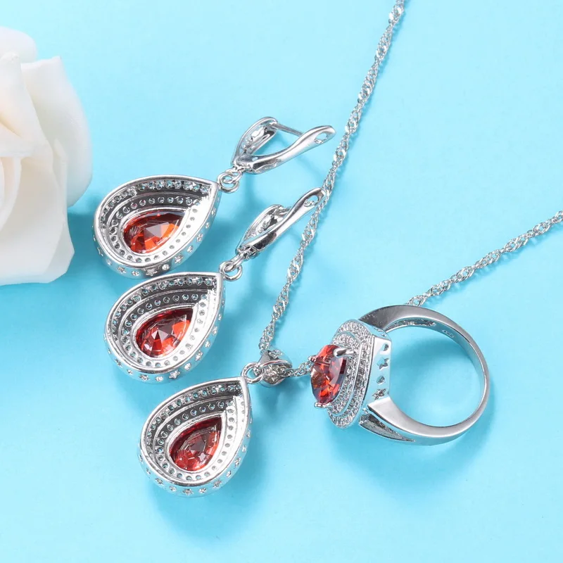 Женский ювелирный комплект из 3 предметов, серебро 925 пробы, 8 цветов