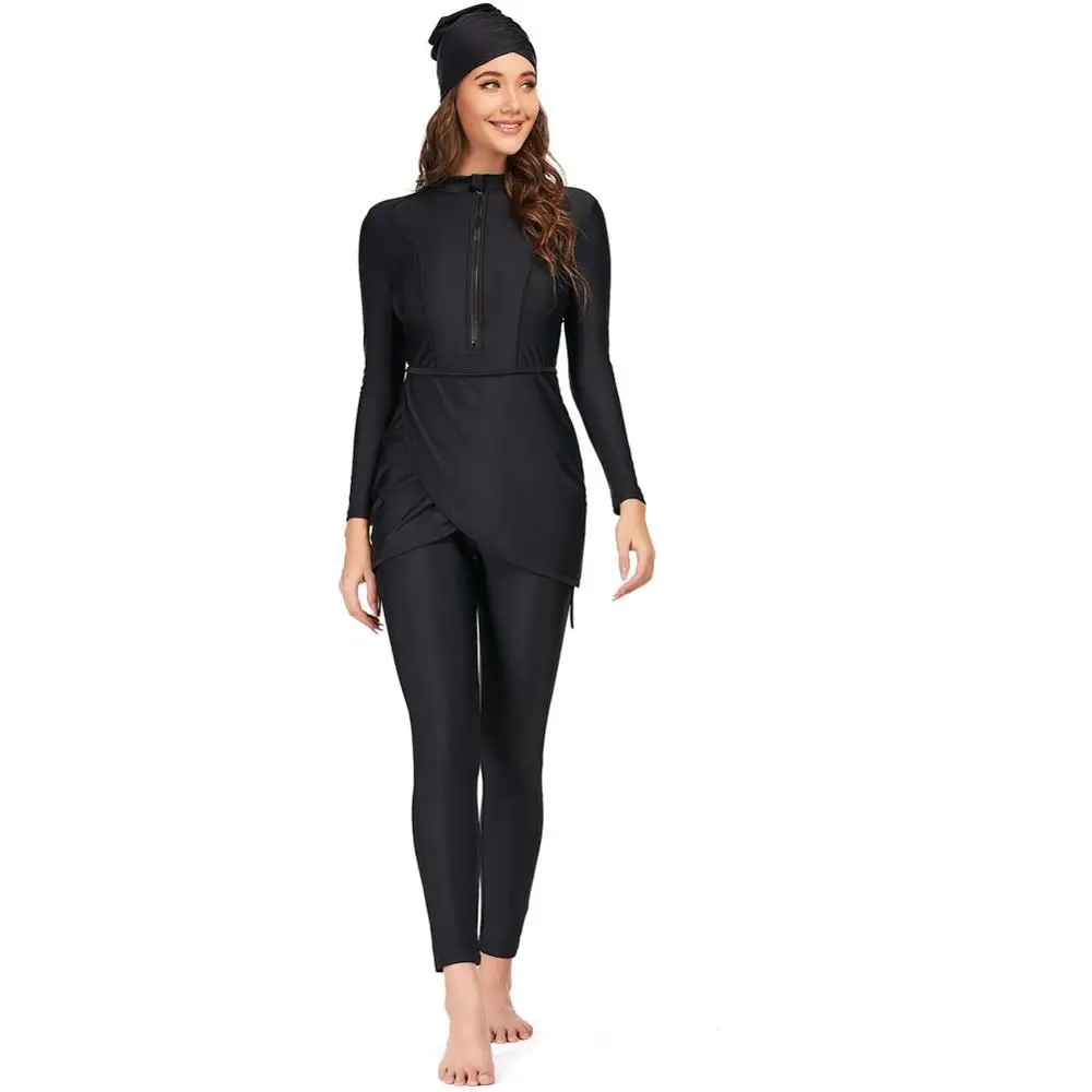 Новинка 2022, однотонный черный Мусульманский купальник с длинным рукавом, Женский Мусульманский купальник Burkini