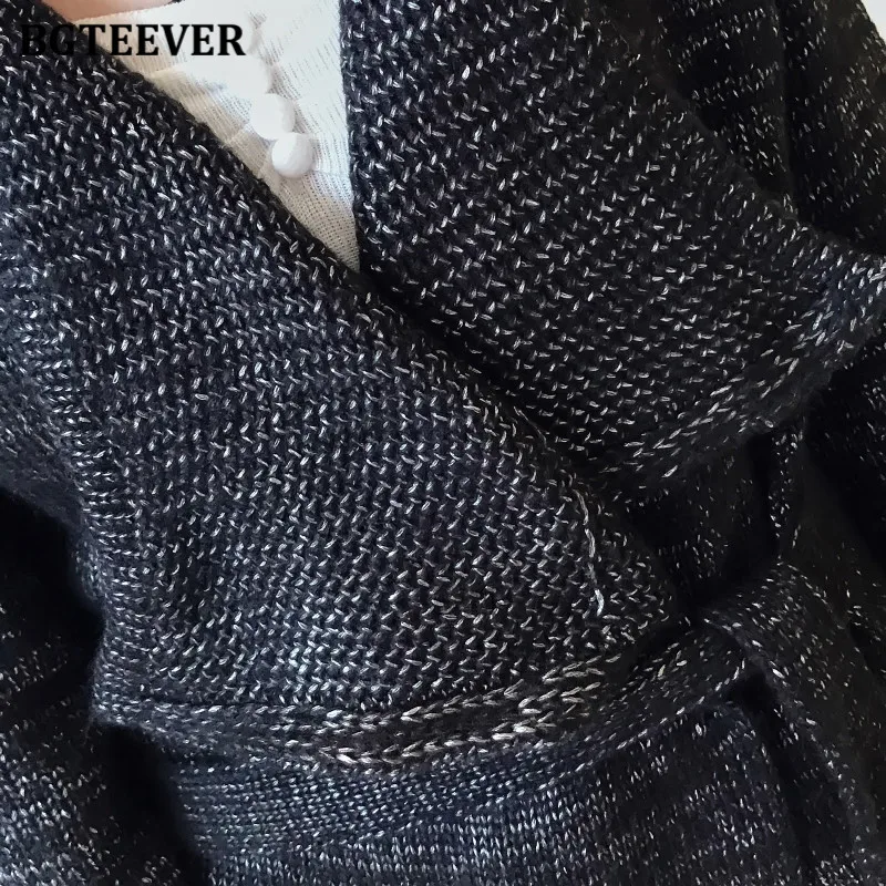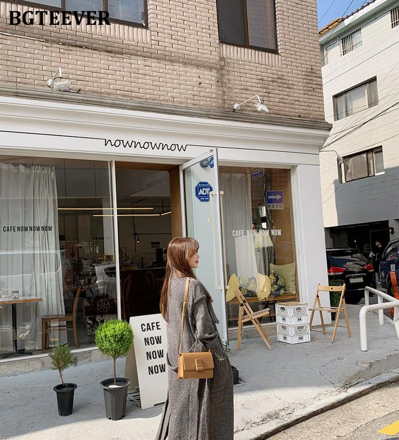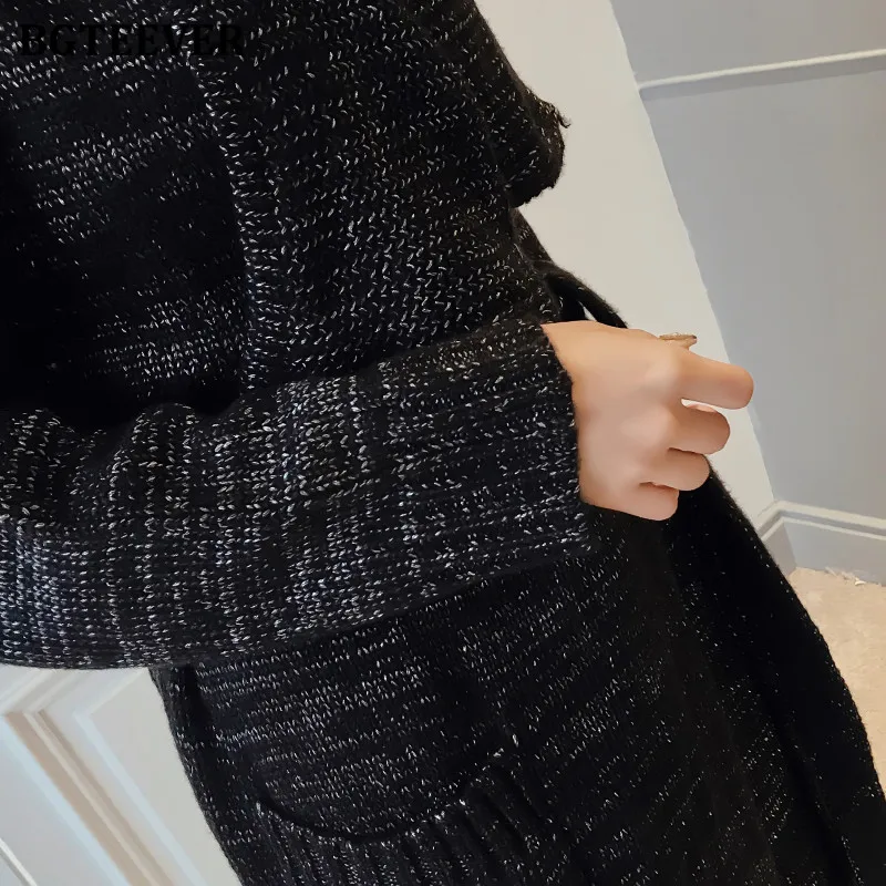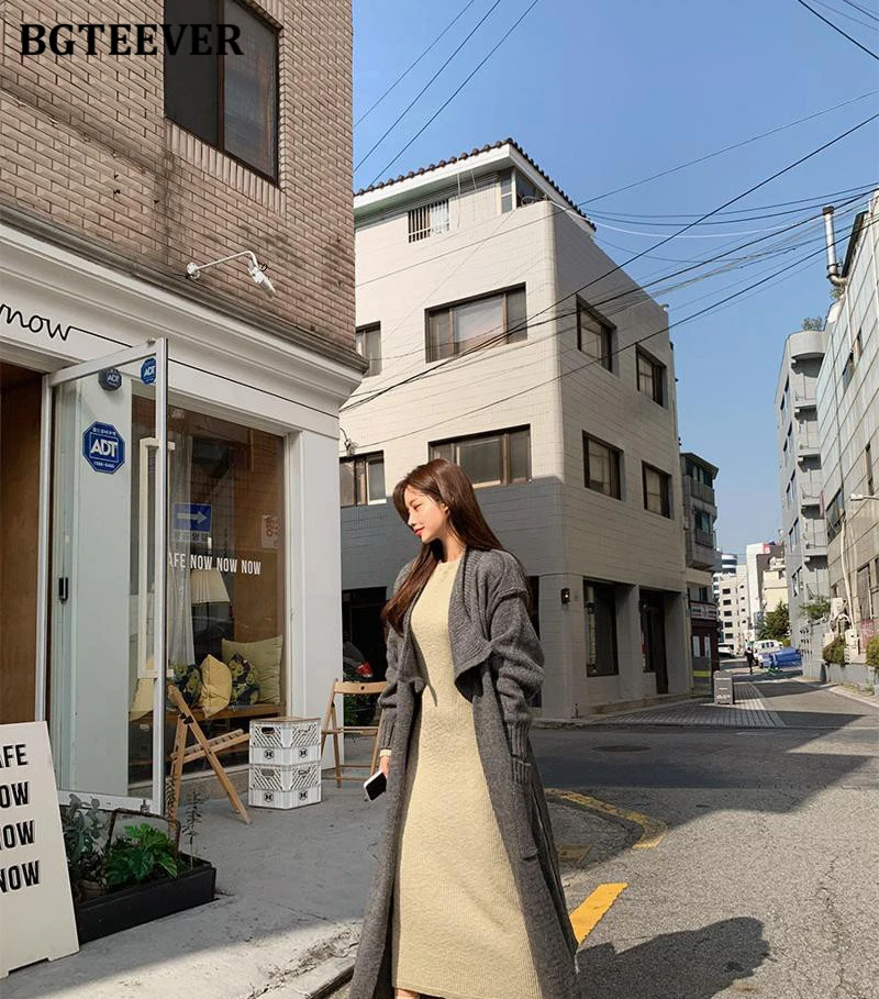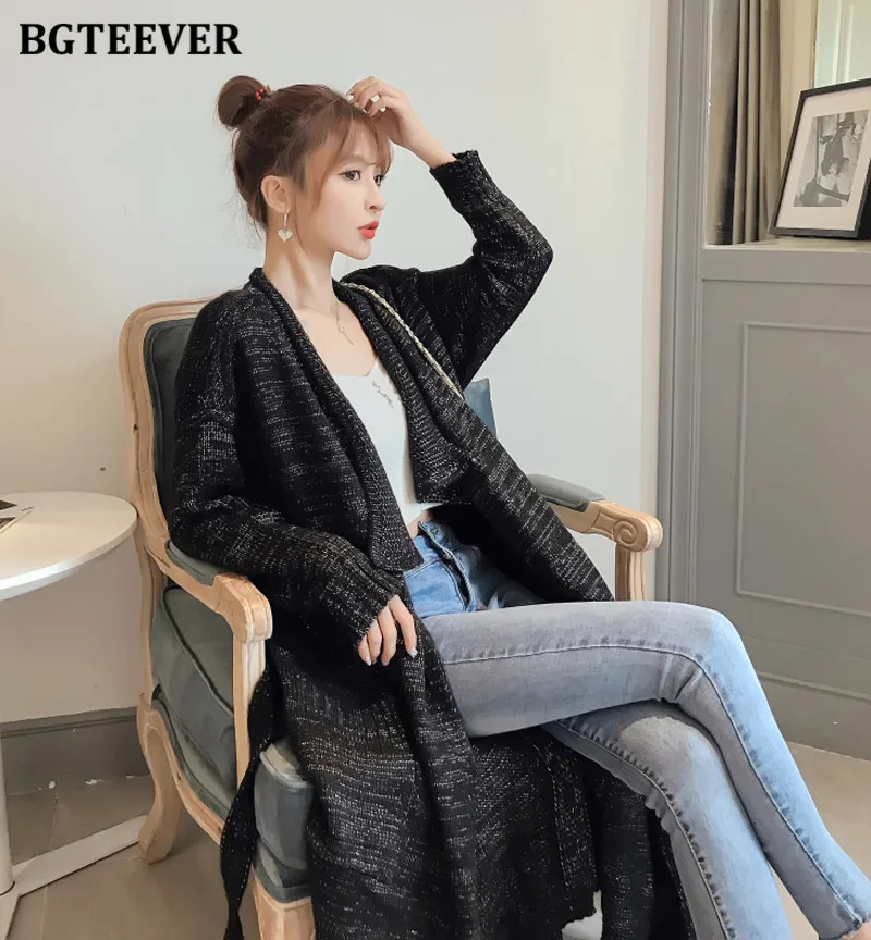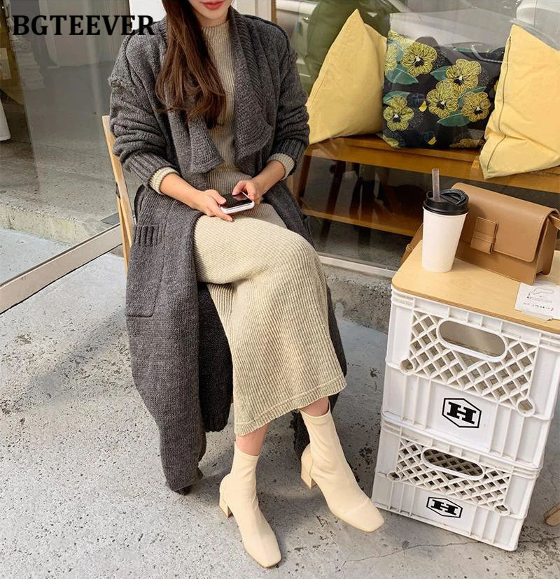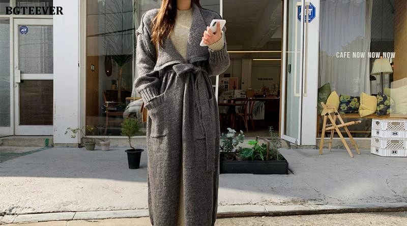 Женский длинный вязаный кардиган BGTEEVER, теплый свободный Свитер оверсайз с открытым стежком и карманами на шнуровке, зима 2020