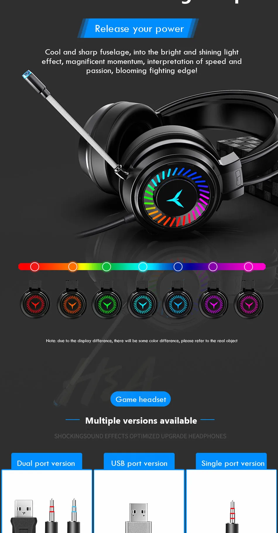 Игровая гарнитура, проводные стереонаушники объемного звучания с микрофоном, USB, цветсветильник, игровая гарнитура для ПК, ноутбука