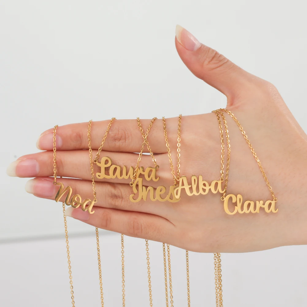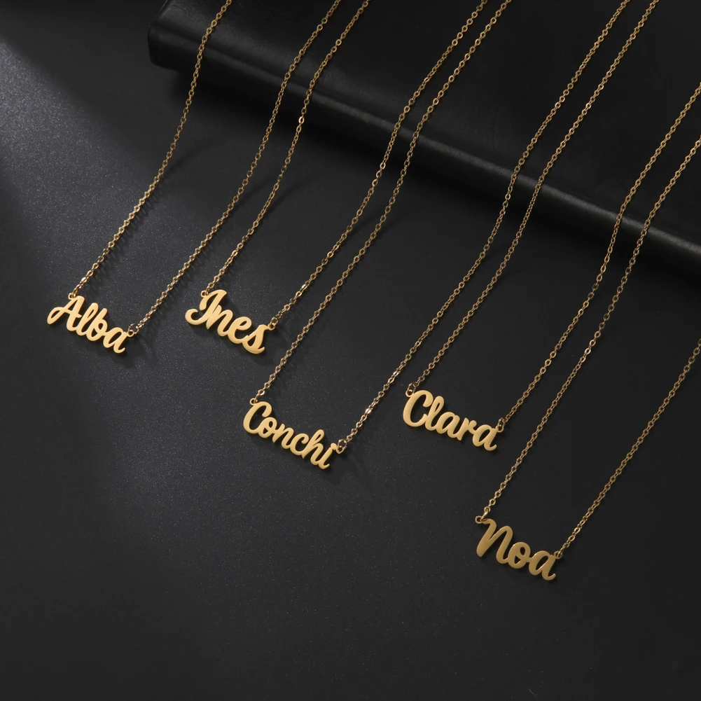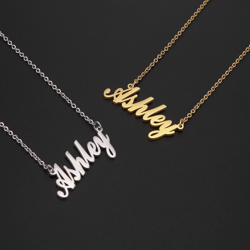 Ожерелье из нержавеющей стали с буквами на заказ, чокер на заказ кулон-табличка с именем, ювелирные изделия для женщин и девочек