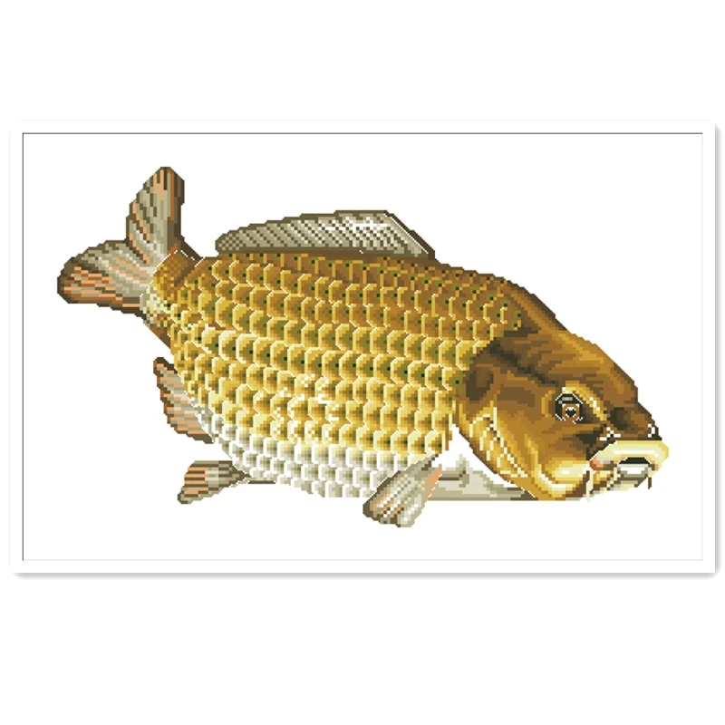 Набор для вышивки крестиком Karp perenabor, белый тканевый комплект с рисунком рыбы, 18 карат, 14 карат, 11 карат, хлопковая нить для рукоделия