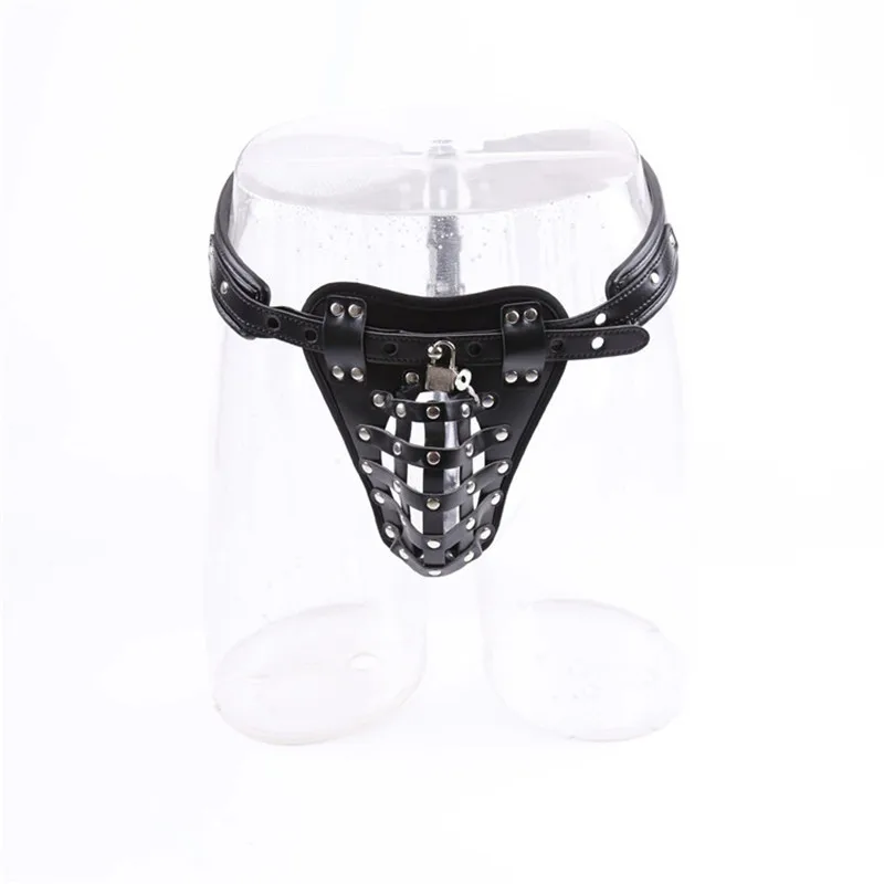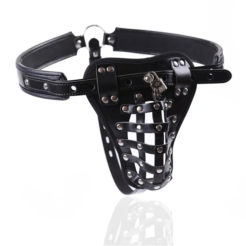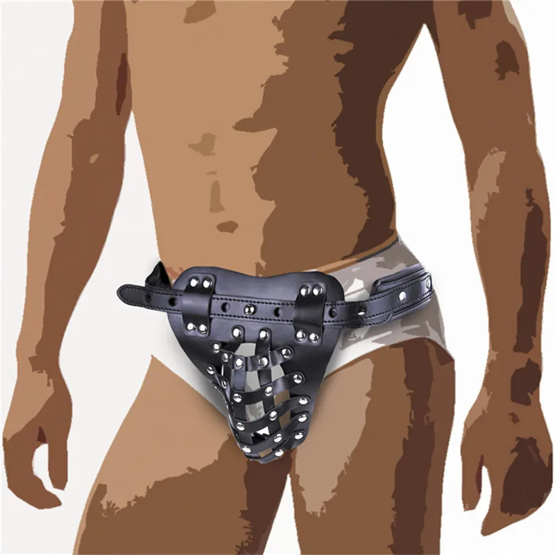 Мужское нижнее белье страпон пенис, целомудрие клетка трусики Для мужчин кожа фетиш бдсм и набедренной повязки с вырезами Гей Трусы для БДСМ секс