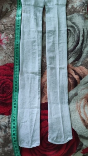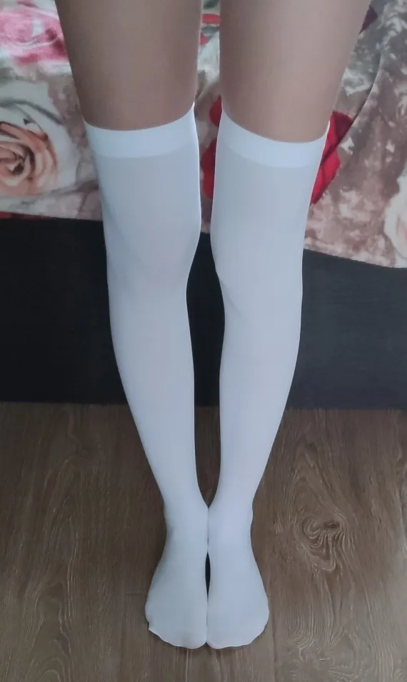гольфы-чулки понравились, довольно плотные, белоснежные, не меньше 60 ден, как я поняла это капрон, хорошо тянутся, на рост 165 и вес 40 можно натянуть на ногу полностью, но ляжку сдавливают, хороший и общительный продавец, посылка не отслеживалась