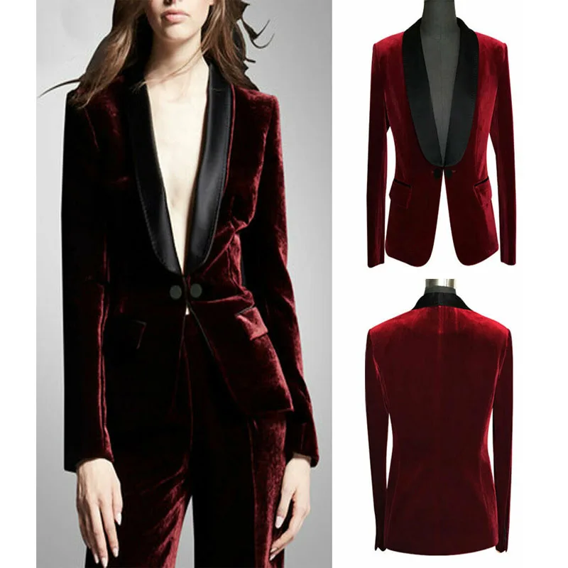 Бархатные деловые костюмы бордового цвета, 2 шт. (пиджак + брюки), женские вечерние свадебные смокинги для выпускного вечера