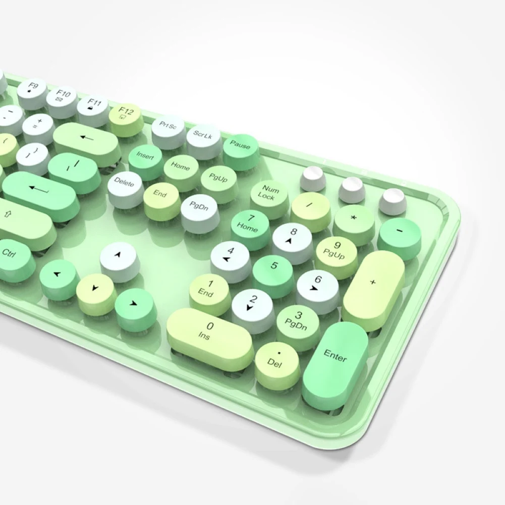 Универсальная Милая портативная беспроводная клавиатура и мышь 2,4 ГГц для офисного компьютера Характеристики: Клавиатура имеет круглые кнопки с дизайном конфетного цвета, что симпатично. Это plug and play, который удобен в использовании. Он совместим с Windows XP/7/8/10. Название товара: Беспроводная клавиатура + мышь Материал: ABS Совместимость: для Windows XP/7/8/10 Интерфейс: USB Батарея: 2 батареи AA (не входят в комплект) Оптическое разрешение: 1600 DPI Количество клавиш: клавиатура: 104 мышь: 5 Цвет: смешанный цвет/монохромный (на выбор) Особенности: Беспроводной, милый, подключи и работай Размер мыши: 101 мм x 75 мм x 34 мм/3,98 дюйма x 2,95 дюйма x 1,34 дюйма (прибл.) Размер клавиатуры: 44,5 см x 13,6 см x 3,5 см/17,52 дюйма x 5,35 дюйма x 1,38 дюйма (прибл.) Примечания: Из-за разницы в освещении и настройках экрана цвет товара может сильно отличаться от изображений. Замеры сделаны вручную, поэтому возможны незначительные отклонения в размерах. Посылка входит: 1 x беспроводная клавиатура 1 x беспроводная мышь 1 x Приемник 1 x Руководство пользователя
