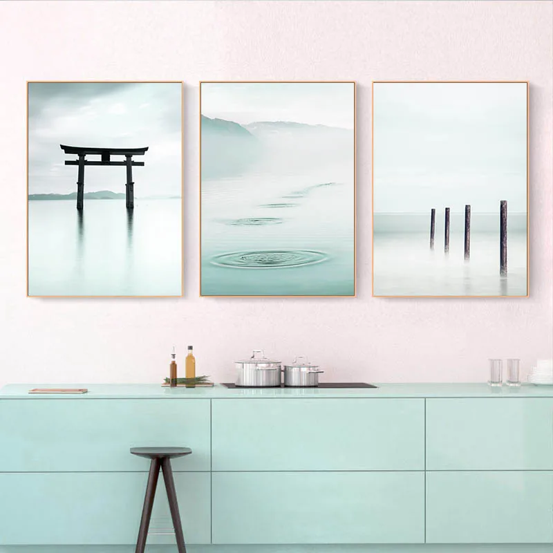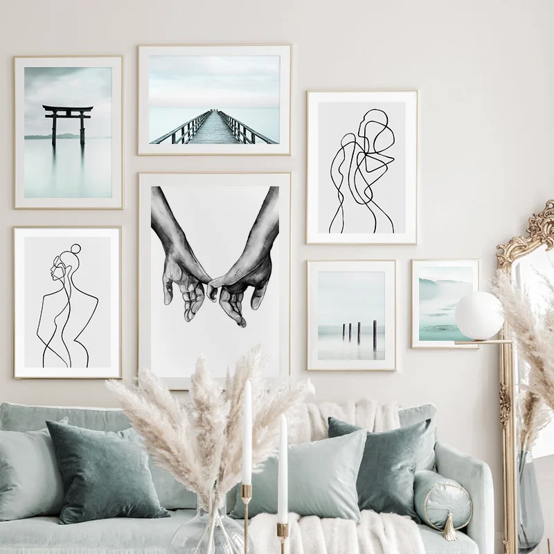 Мост озеро пейзаж холст стены Искусство Печать картина скандинавские абстрактные линии рисунок плакат минималистский картина Современный домашний декор