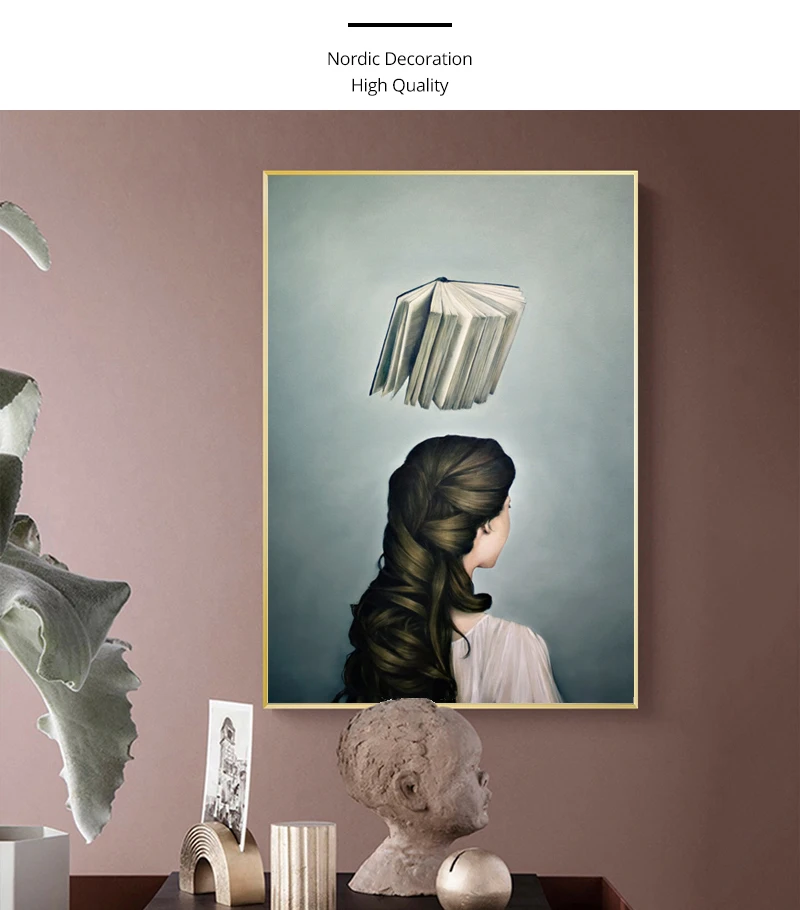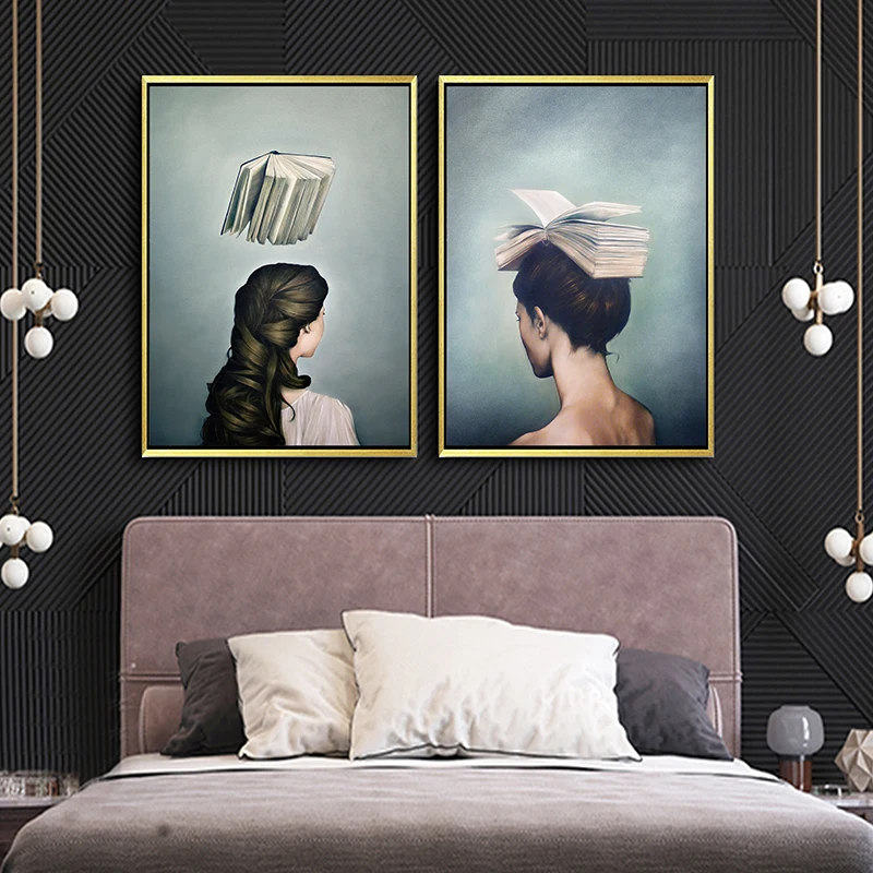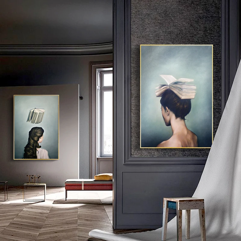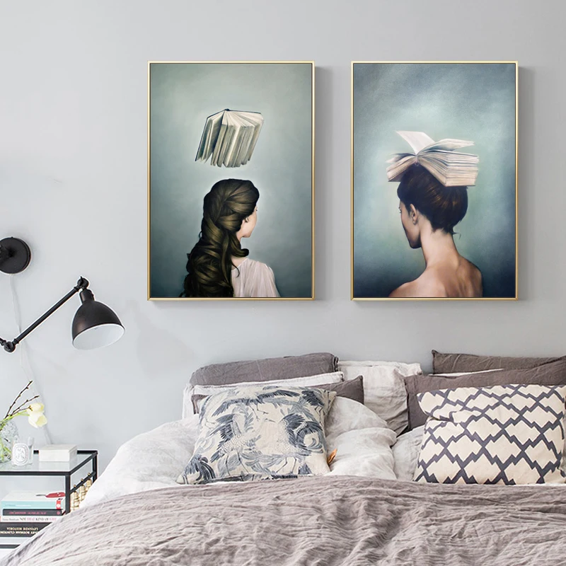 Абстрактная живопись книга женщина Картина на холсте Современные настенные художественные плакаты и принты декоративная картина Гостиная украшение дома