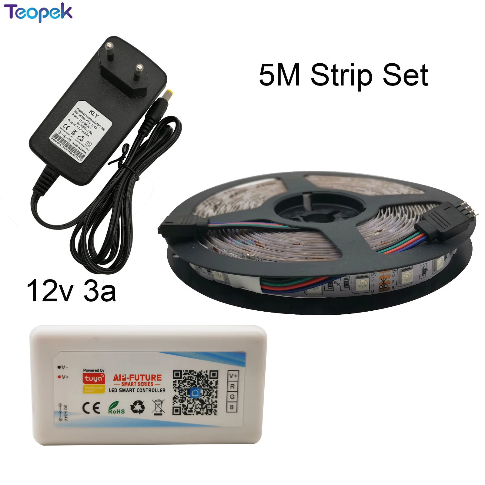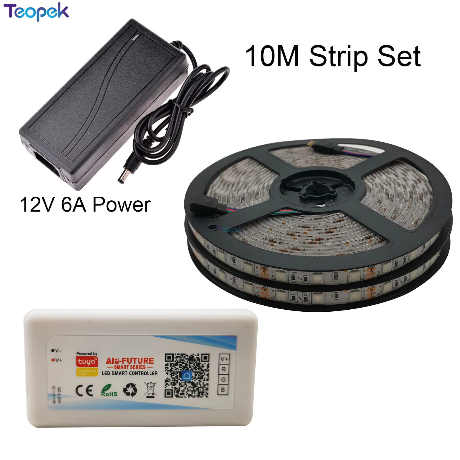 Светодиодная лента 5 м10 м 5050 RGB RGBW RGBCCT Гибкая светильник Tuya Wifi управление ler Alexa Google Home Голосовое управление + адаптер питания