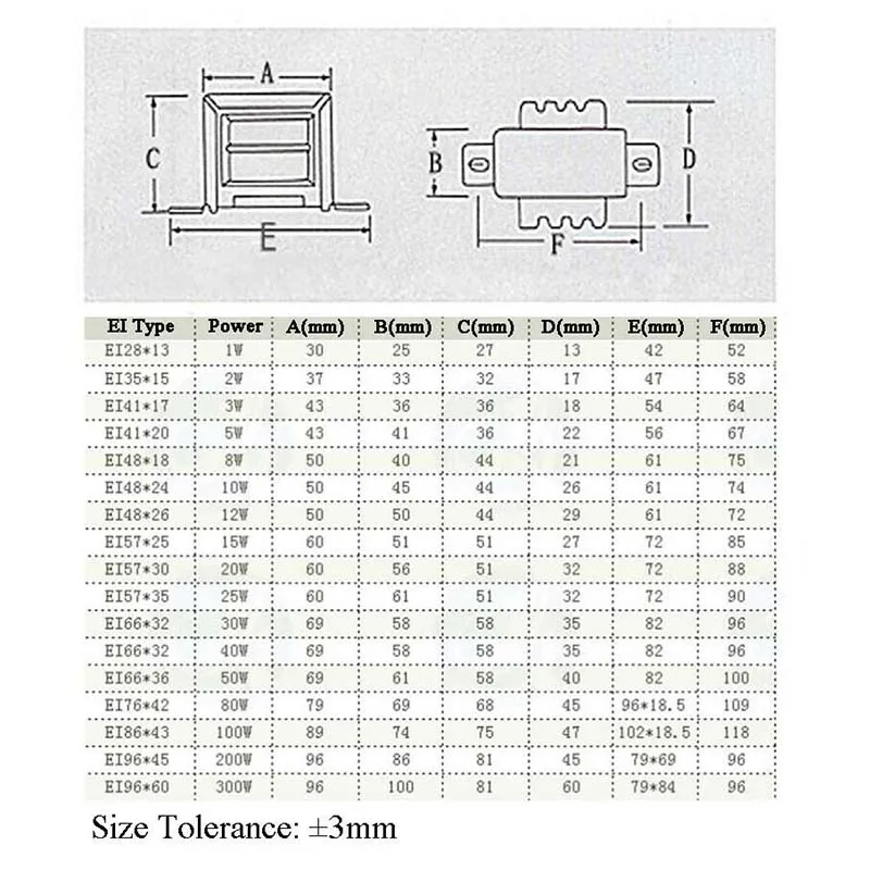 Характеристики: CQC,CCC,CE совместимый EI модель: EI35 * 15 Вход: переменный ток 220В/50Гц Номинальная мощность: 2 Вт Выходное напряжение: Как указано в списке вариантов Частотные характеристики: низкая частота Стиль Конструкции: однофазный Влагостойкий режим: открытый тип Режим охлаждения: Естественное охлаждение Форма охлаждения: надувная Размер, пожалуйста, обратитесь к картинке (2 Вт). Проводка: Красный провод> входной провод Синий провод> выходной провод Желтый провод> заземляющий провод (или черный провод) для двойного выхода Примечание: Из-за разницы в освещении и экране, цвет изделия может значительно отличаться от цвета на изображении, пожалуйста, поймите. Убедитесь, что вы согласны со всеми условиями, прежде чем разместить заказ. Возможны отклонения из-за ручного измерения. Посылка включает в себя: Силовой трансформатор x1 Размер: