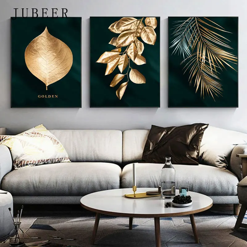 Холщовая картина в виде золотого листа, настенные картины черного и золотого цвета, настенные картины для гостиной, Декор для дома