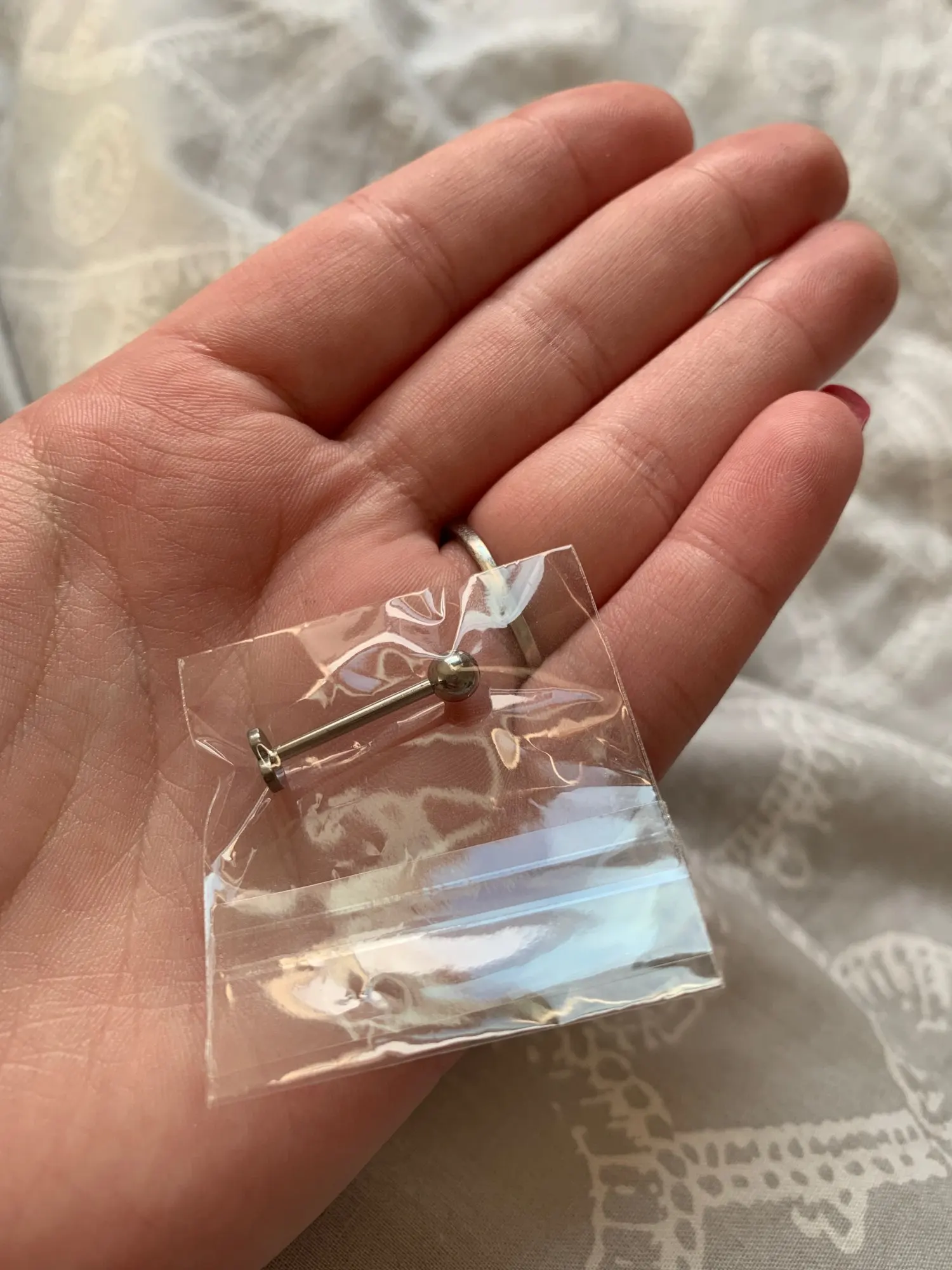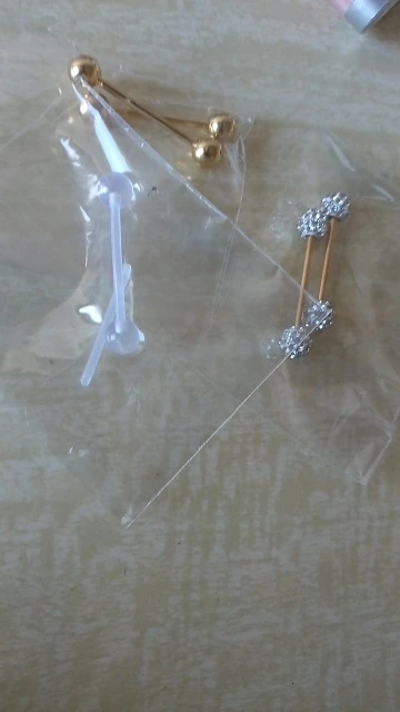 Все точно так же, как на картинке! Очень красиво и очень мило выглядит, цвет просто идеальный! Единственным недостатком является то, что не все пирсинг могут удалить верхнюю часть, что является важным для пирсинга языка, в качестве меры предосторожности, чтобы не проглотить всю вещь. Но я буду управлять