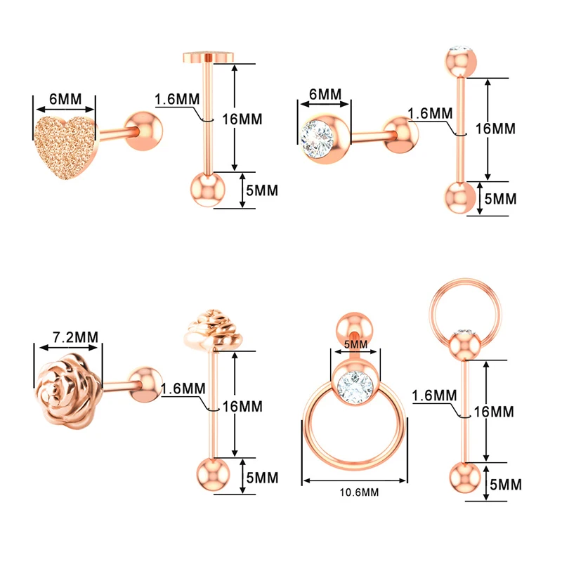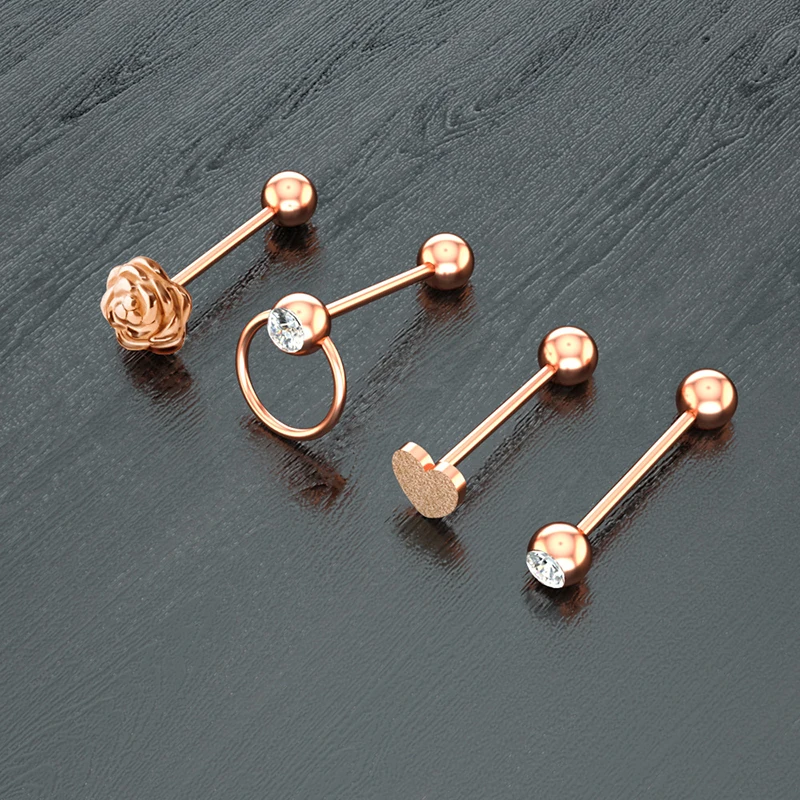 Кольцо-гвоздик для пирсинга, из нержавеющей стали, розовое золото серьги, Надеваемые На ушной хрящ пробы, 14 г, 1-4 шт.