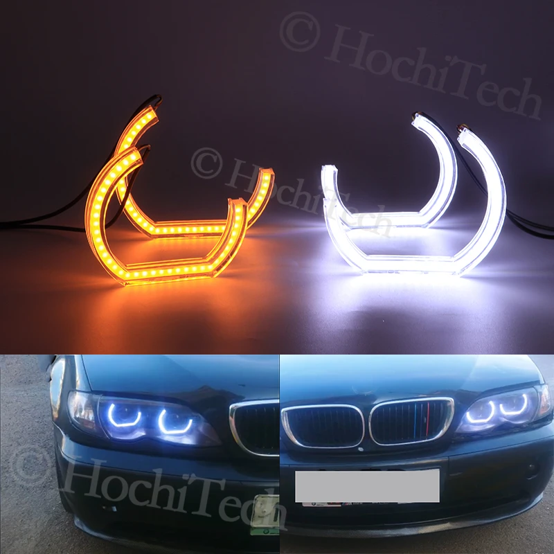Светодиодный ные ангельские глазки для BMW 3 серии E46 Седан facelift 01 '-05 галогенные фары автомобильные фары аксессуары Halo 3D DTM LCI стиль акриловые