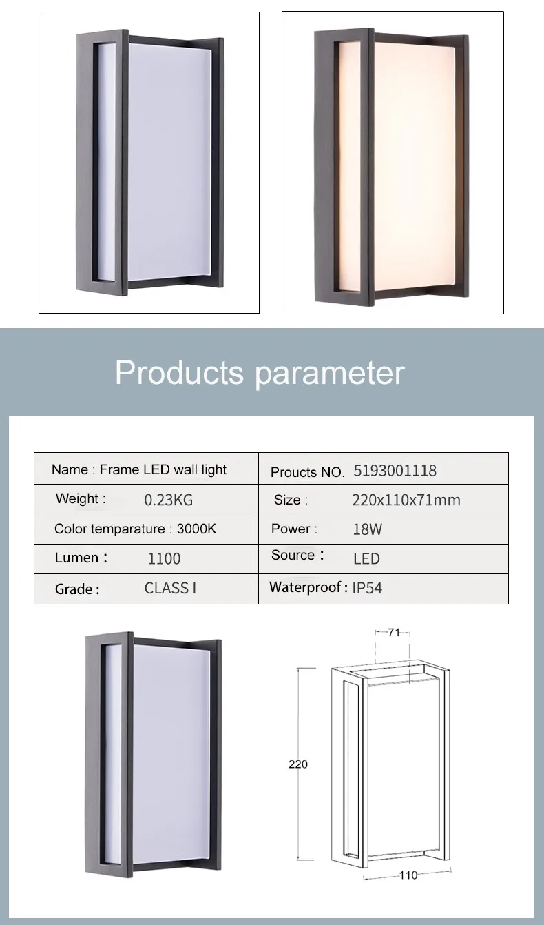 18 Вт светодиодный наружный каркас настенный светильник водонепроницаемый IP65 крыльцо сад наружная дверь настенный светильник украшение алюминиевый светильник