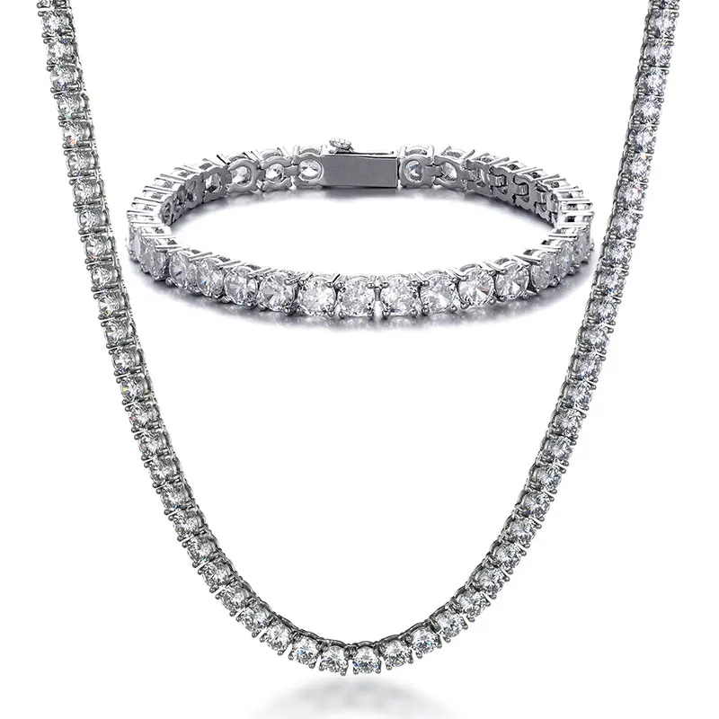 Цепочка для тенниса в стиле хип-хоп, теннисная цепь с кубическим цирконием AAA, ширина 5 мм, украшение с блестками, с 4 зубцами, ожерелье, браслет для мужчин