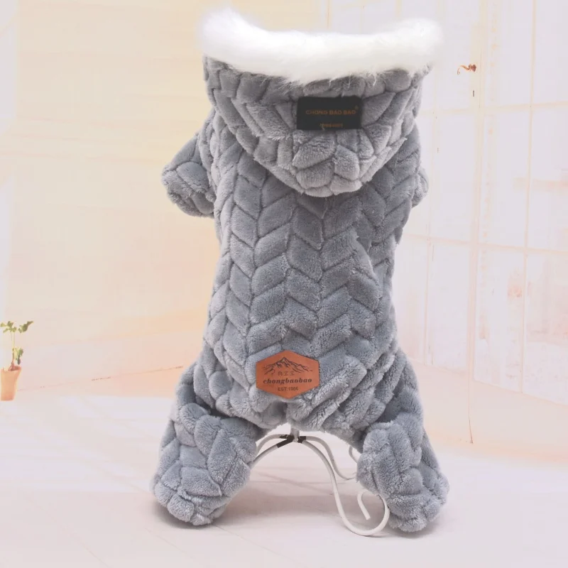 Одежда для собак, зимний теплый комбинезон на четырех ножках с большим меховым воротником, утепленная одежда для домашних животных