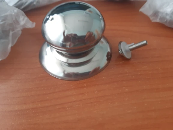 Заказывал 2 ручки, вторая немного другая, но лучше, как оказалось. От этой ещё до отправки хотел отказаться, но продавец проигнорировал и выслал. Глянцевая, выглядит дёшево, впрочем, так есть. Металл очень тонкий, при монтаже можно помять легко, форма ручки не очень удобна, как оказалось. Не рекомендую эту модель.