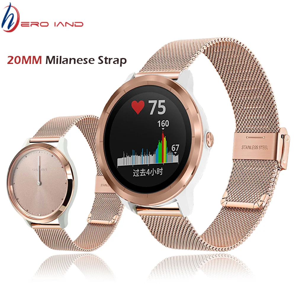 20 мм Миланский ремешок из нержавеющей стали для часов Garmin Vivoactive 3 Vivomove HR ремешок для часов Garmin Forerunner 245 245M/645