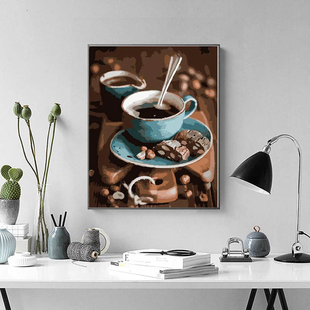 AZQSD Краски по номерам Кофе исходя из абстрактное искусство на холсте Unframe Краски ing по номерам натюрморт ручная Краски ed подарок