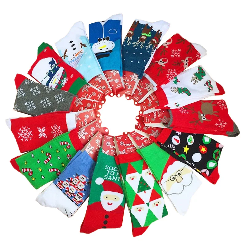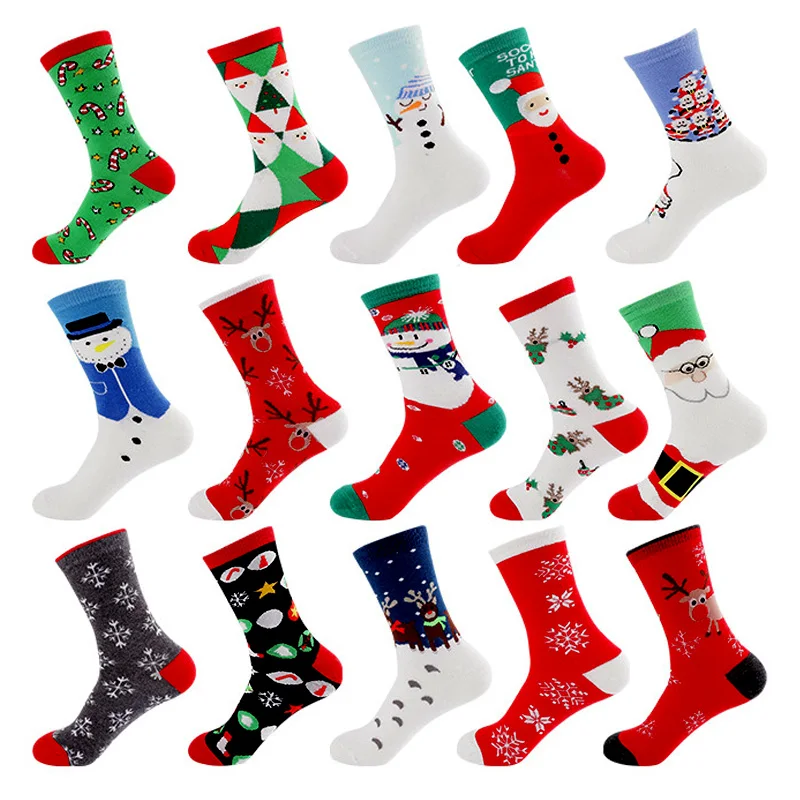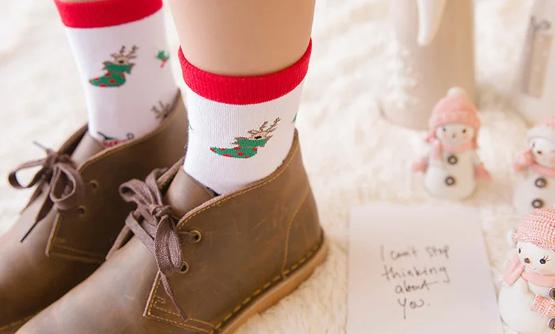 Носки мужскиеженские, хлопковые, с рисунком на Рождество, забавные, с Санта Клаусом, лосем, снегом, хип-хоп, на зиму, Новый Год носки, подарок на Рождество