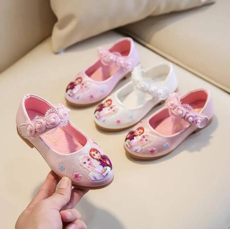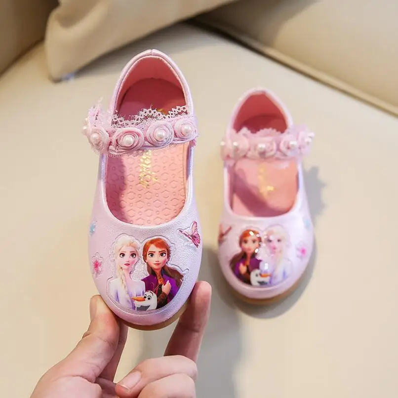 Кожаные туфли для маленьких девочек, детские туфли принцессы Холодное сердце, Детские классические туфли с жемчугом, милые мягкие элегантные туфли для свадебной вечеринки