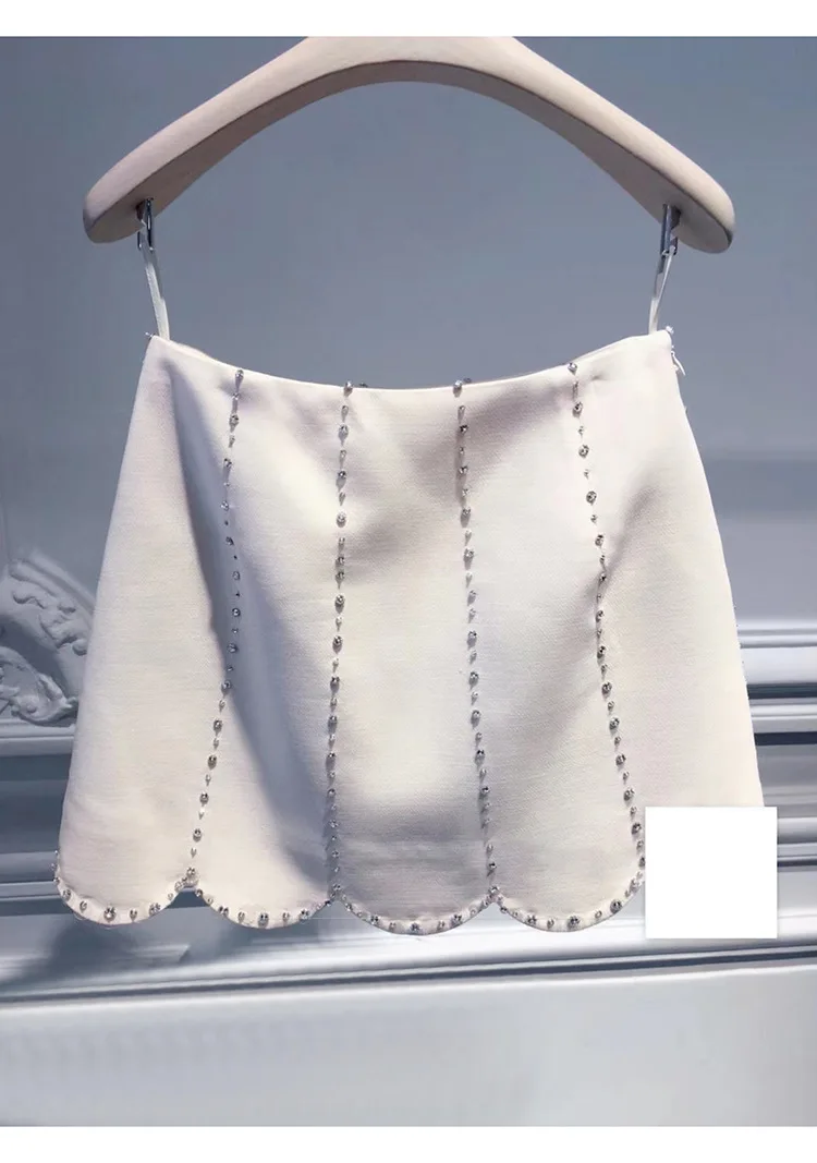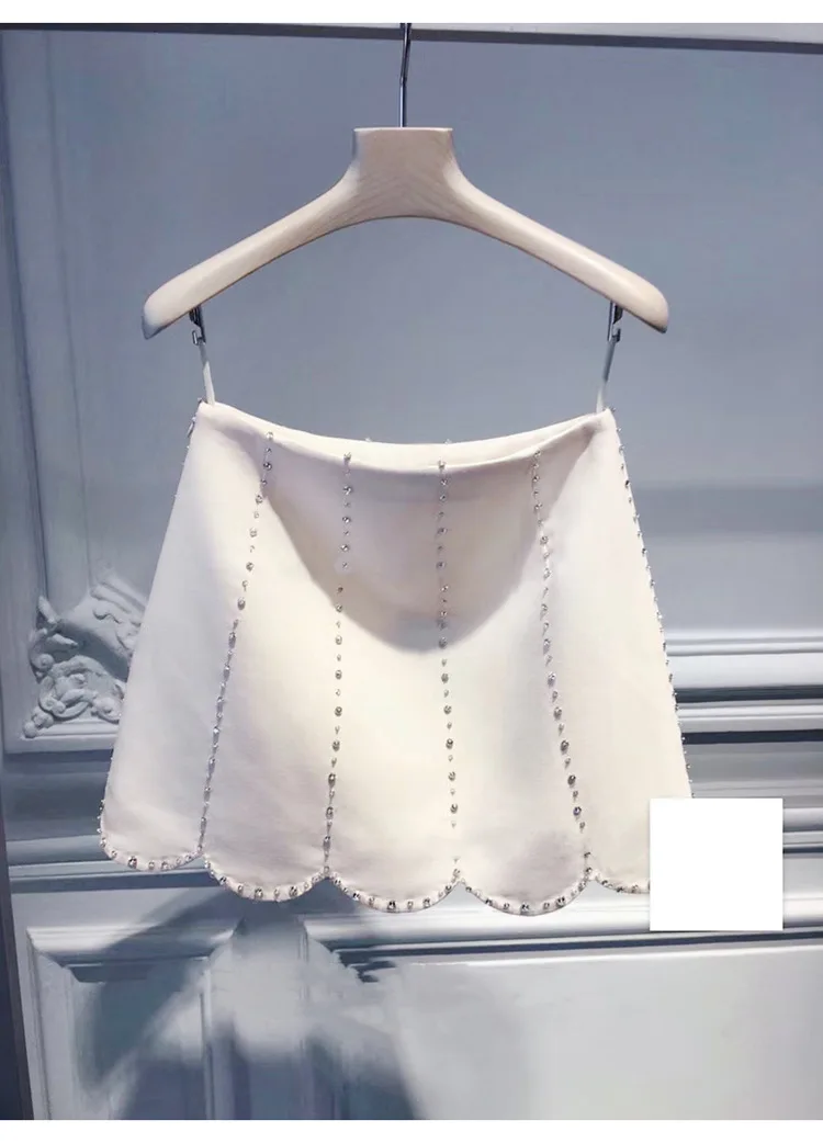 Брендовая дизайнерская женская модная Роскошная праздничная одежда, осень-зима, соблазнительная трапециевидная мини-юбка со стразами и волнистыми кристаллами, новая юбка с высокой талией 2022