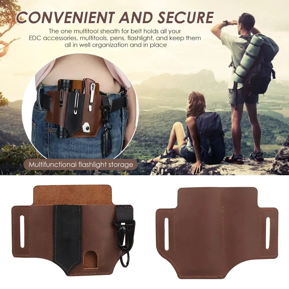 Мультитул кожаный чехол для мужчин ретро кожаный чехол с быстрой кнопкой футляр для фонарика держатель для ручки Органайзер пояс Пряжка Для Ремня