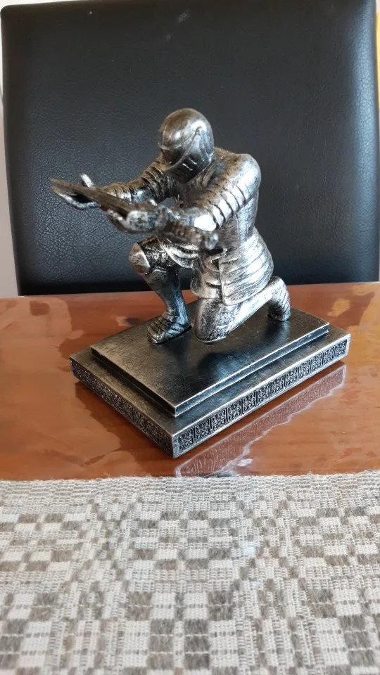 Потрясающее украшение для рабочего стола. Гораздо больше качества, чем ожидалось. Не ощущается как смола, больше как металл и тяжелый. Очень тяжелый. Это немного больше, чем я думал, но это моя вина, что я не проверял размер перед покупкой. Одна вещь, немного разочарованная мечом: выглядит отлично, но ощущается дешево и пластик (в отличие от металлических ощущений рыцаря). В целом, очень доволен рыцетом. Обновляет мой рабочий стол :-)