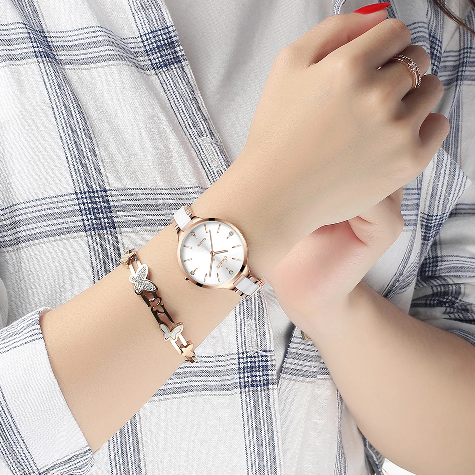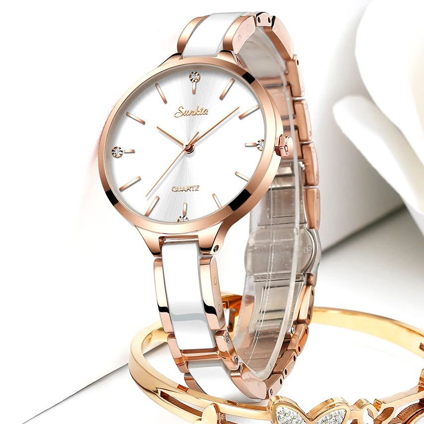 SUNKTA женские часы керамические простые женские часы с алмазами по...