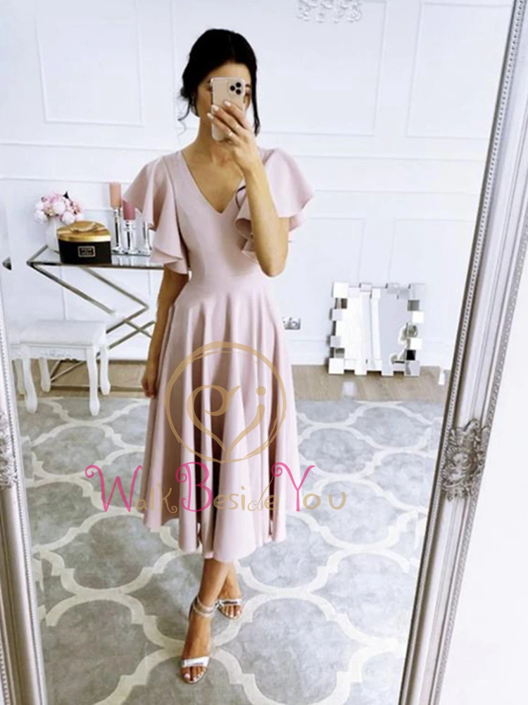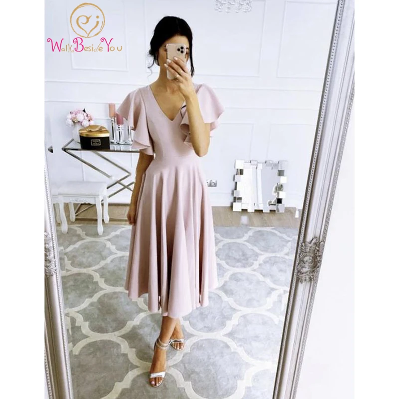 Женское шифоновое платье с коротким рукавом, V-образным вырезом