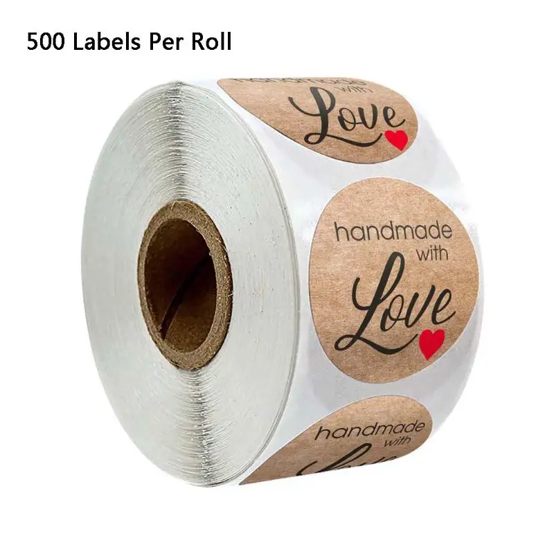 500 шт.рулон, крафтовые наклейки ручной работы с любовным сердцем, этикетки для печати для скрапбукинга, Декоративные Канцтовары