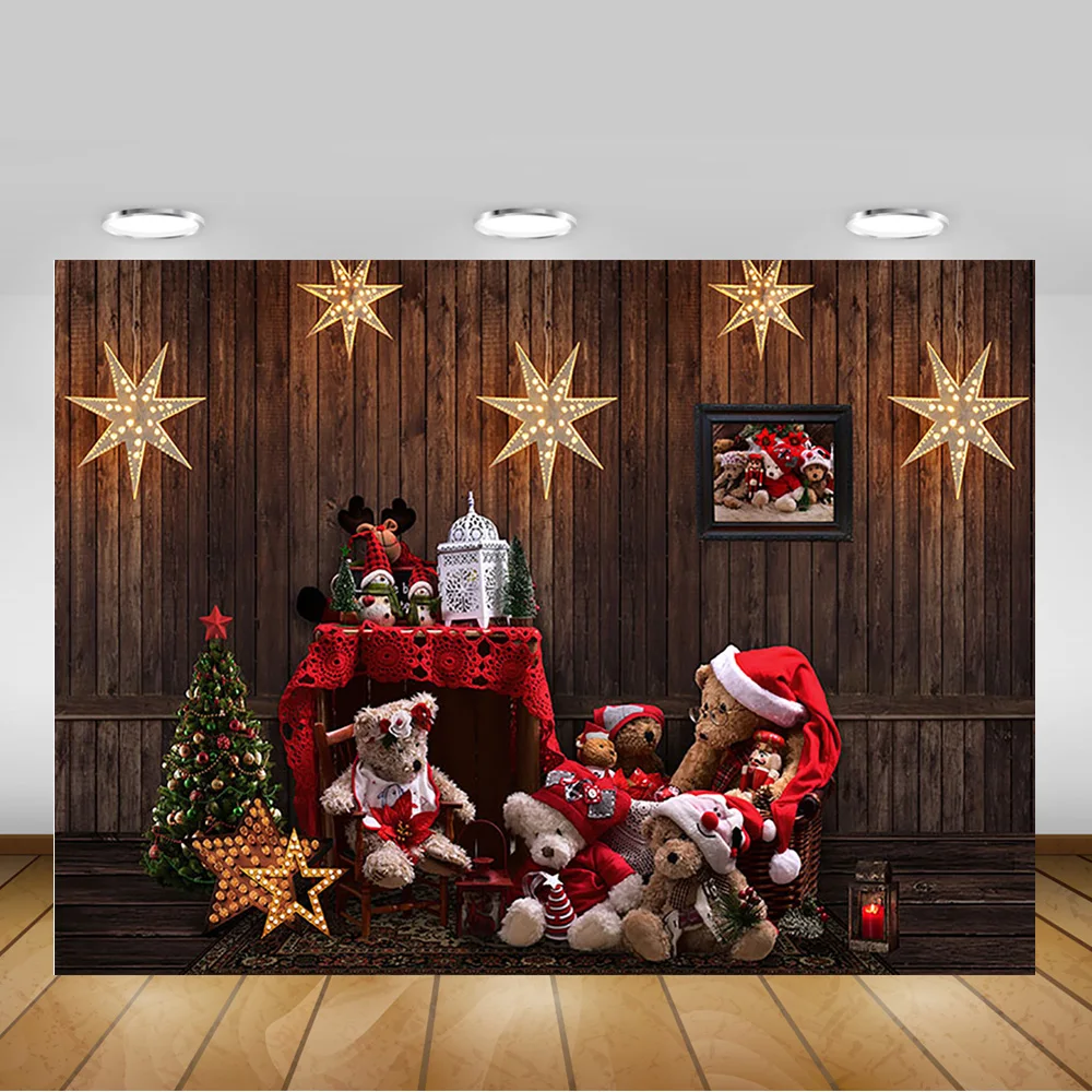 Зимнее Коричневое Пальто деревенский деревянный настенный фон с блестками и нашивкой в виде звезды для девочек камин рождественские подарки игрушки фоновая фотография Рождество деревья