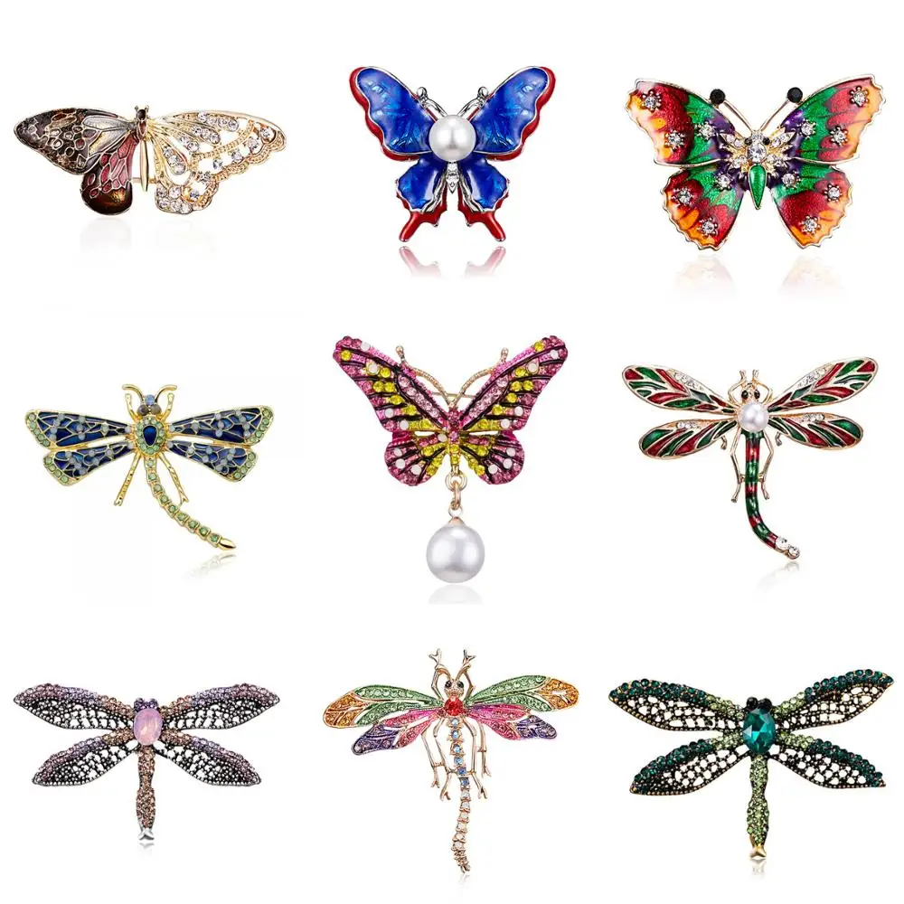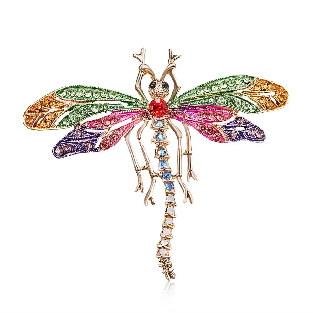 Эмалевая брошь в форме стрекозы, стразы, изысканные шикарные насеко...