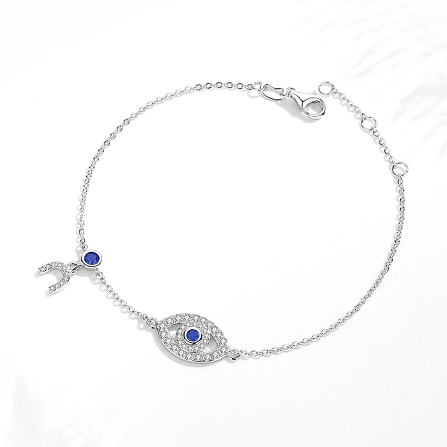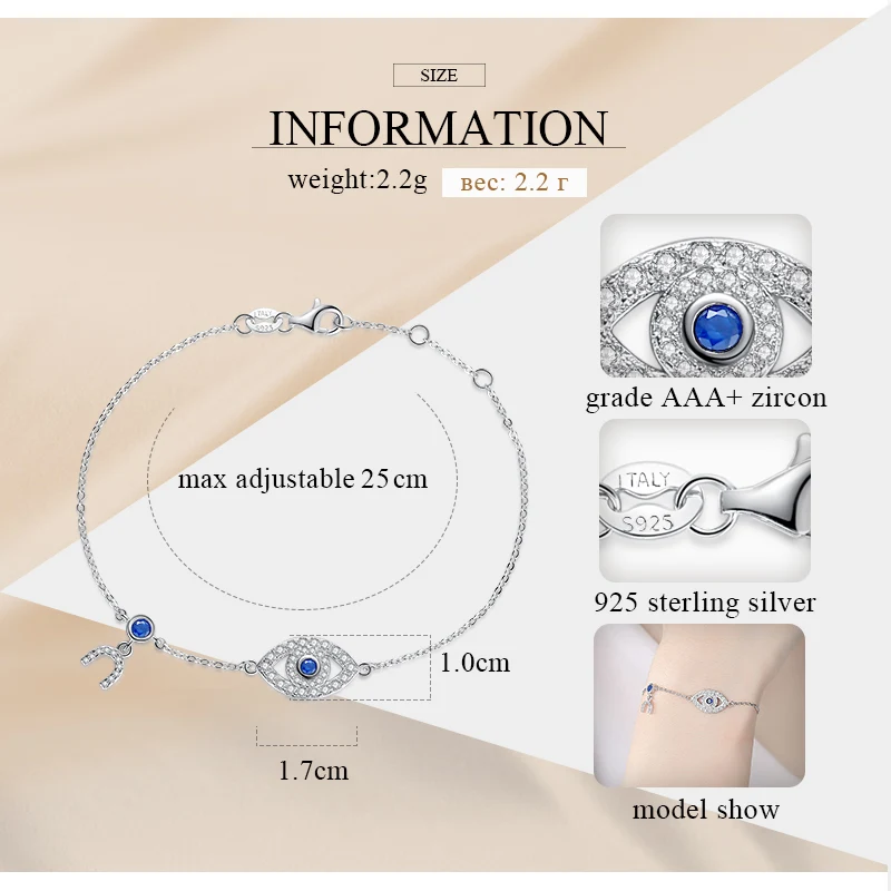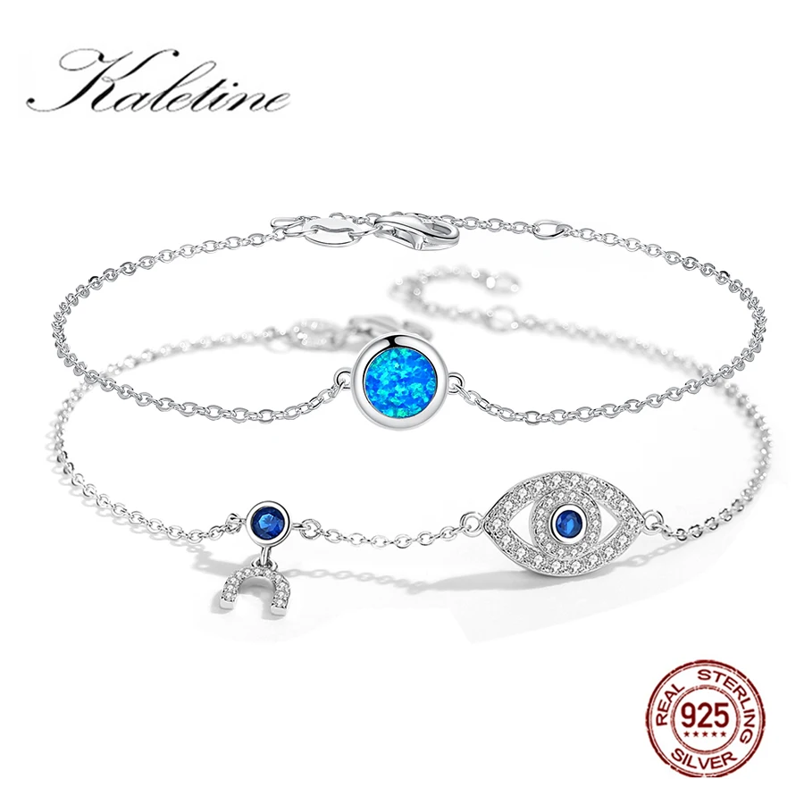 Женский винтажный браслет KALETINE, браслет из стерлингового серебра 925 пробы с подвеской в виде голубого сглаза