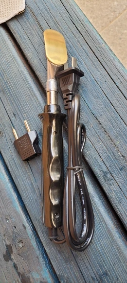 Электрический паяльник с пластиковой ручкой и плоским наконечником для ремонта бампера автомобиля