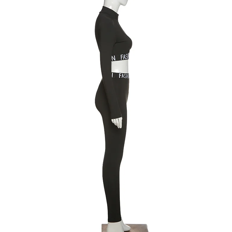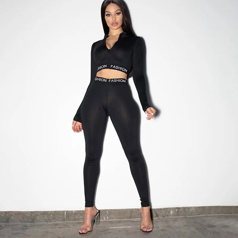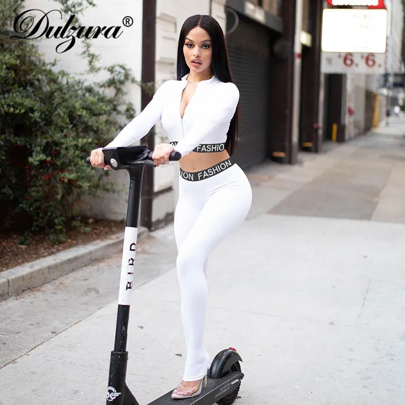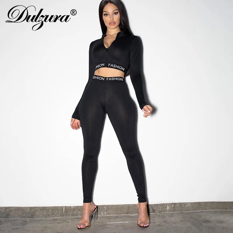 Женский комплект из 2 предметов Dulzura с буквенным принтом, укороченный топ на молнии, леггинсы с длинным рукавом, облегающая Сексуальная уличная одежда, спортивный костюм для тренировок