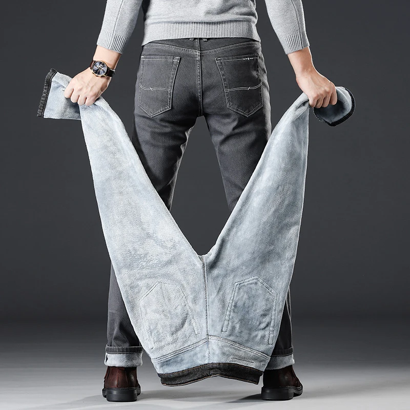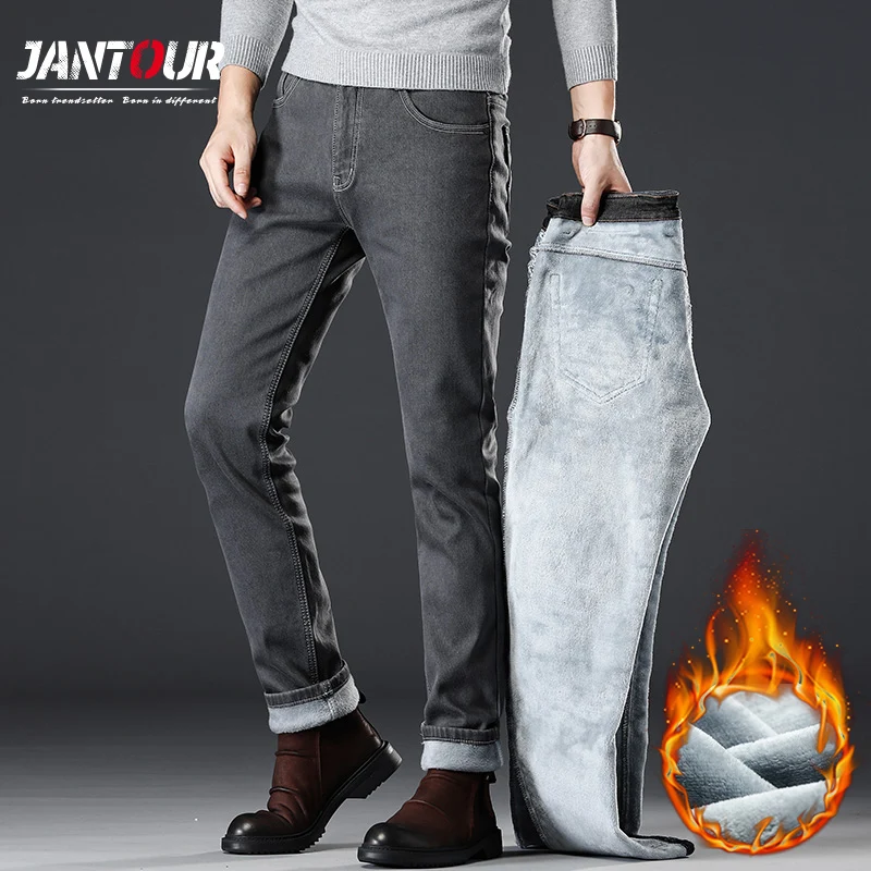 Jantour 2022 новые осенние и зимние мужские утепленные флисовые джинсы деловые повседневные джинсы для прямых стрейчевых брюк мужские серые