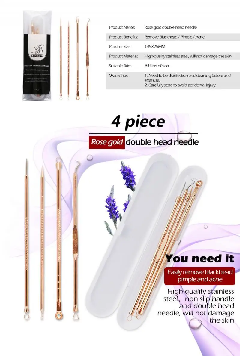 4 шт./набор, средство для удаления черных точек из нержавеющей стали, Neddles Acne, очищающее средство для лица, игла для прыщей, экстрактор пятен, инструменты для красоты, уход за кожей