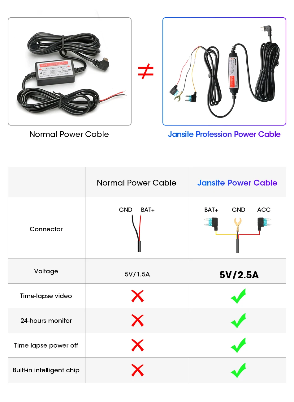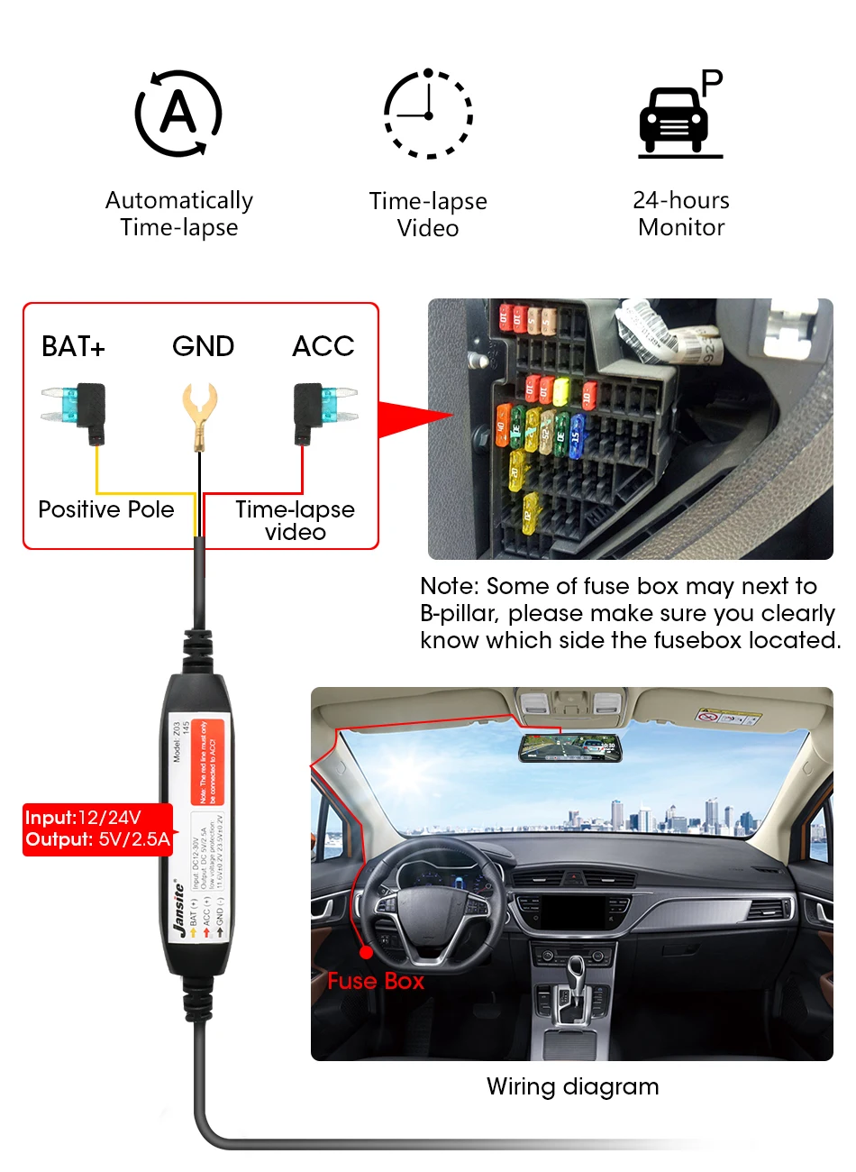 Кабель питания Jansite ACC с предохранителем, жесткий кабель, комплект из жесткого провода, мини USB 2,0 для замедленной съемки видео, Автомобильный видеорегистратор, регистратор, регистратор