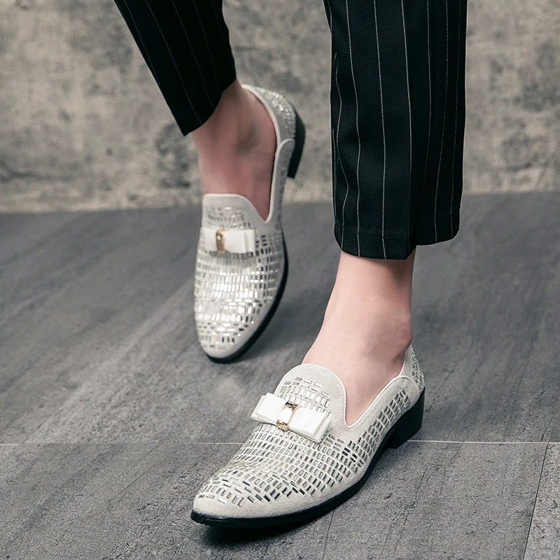 2020 мужские вечерние туфли, стразы, лоферы, повседневные, для выпускного, свадебные, кожаные, без шнуровки, обувь для мужчин серебряного размера плюс 13