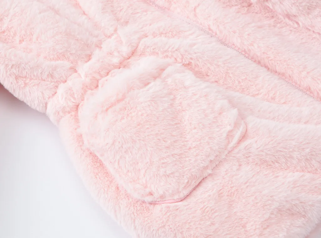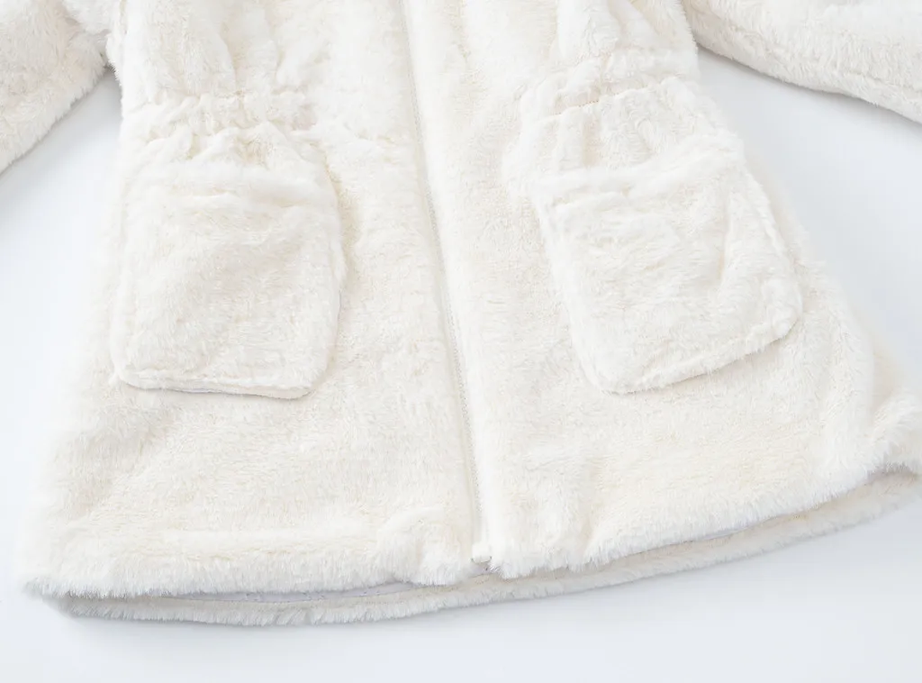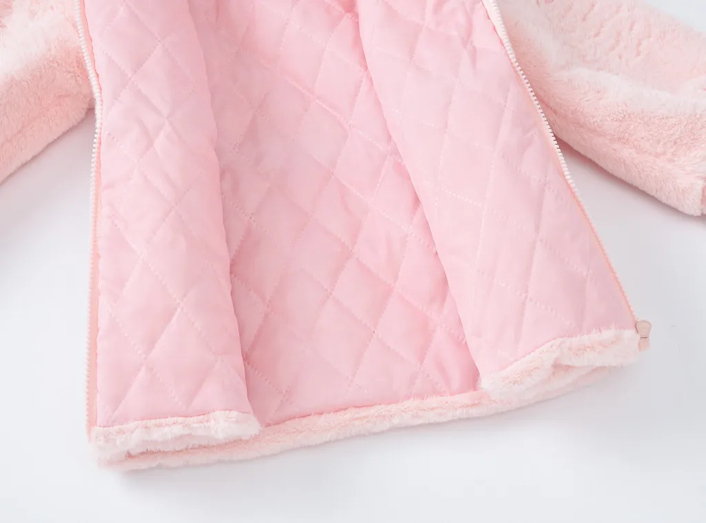 Пальто с искусственным мехом для девочек, детская одежда новый зимний шерстяной свитер для девочек куртка с меховым подкладом для маленьких девочек утепленная куртка, пальто