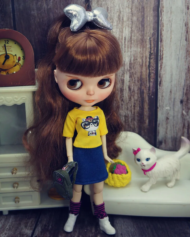 Модный комплект одежды для куклы блайз, наряды для кукол, майка, пальто, юбка, платье, брюки, брюки для куклы блайз, аксессуары для кукол 16