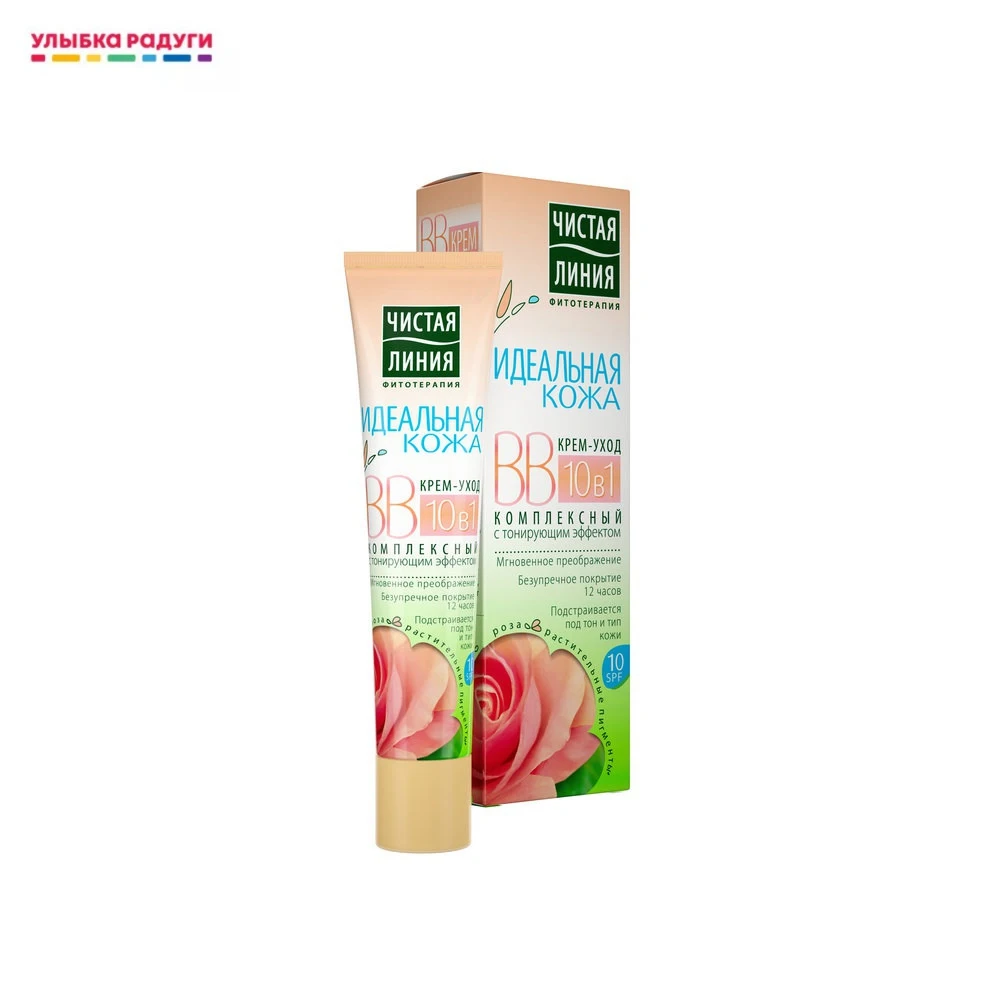 ВВ-крем 10 в 1 - это легкий крем Идеальная кожа с тонирующим эффектом, сочетающий в себе преимущества ухаживающего и тонального средств. Крем выравнивает тон и матирует кожу, делает поры менее заметными. Комплекс природных активных компонентов глубоко увлажняет и питает кожу, освобождает ее от токсинов. Крем выравнивает тон и матирует кожу, делает поры менее заметными. Благодаря SPF10 защищает от UV-лучей. Защищает от негативного воздействия окружающей среды. Кожа мгновенно становится идеальной.