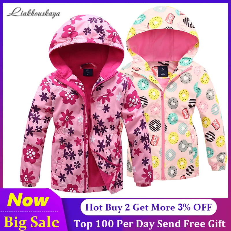 110-150 см одежда 2020 брендовая весенняя куртка для девочек пальто с капюшоном водонепроницаемая ветрозащитная Цветочная верхняя одежда для маленьких девочек флисовая одежда