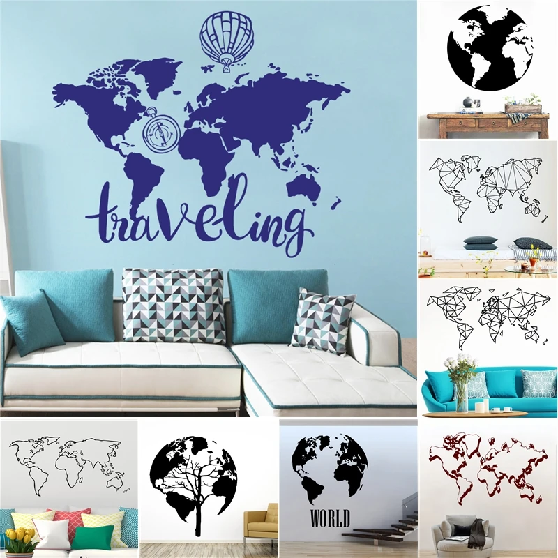 Художественная карта мира виниловая настенная наклейка для украшения комнаты Аксессуары для декора спальни офисное семейное украшение карта обои фрески