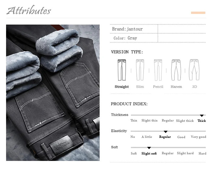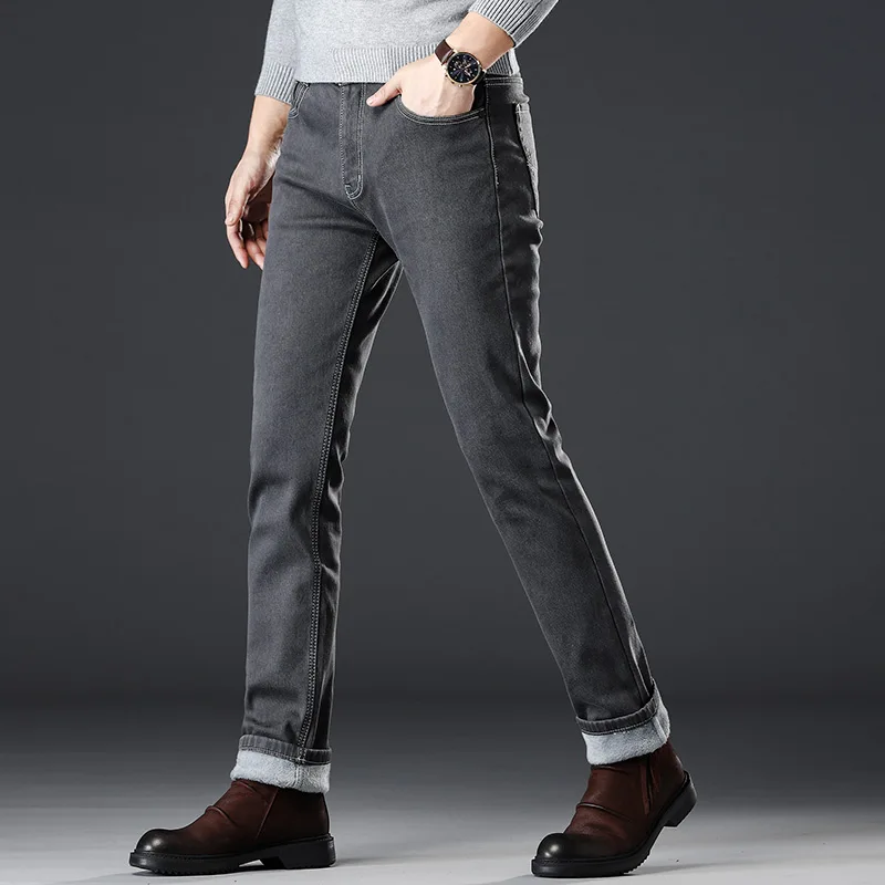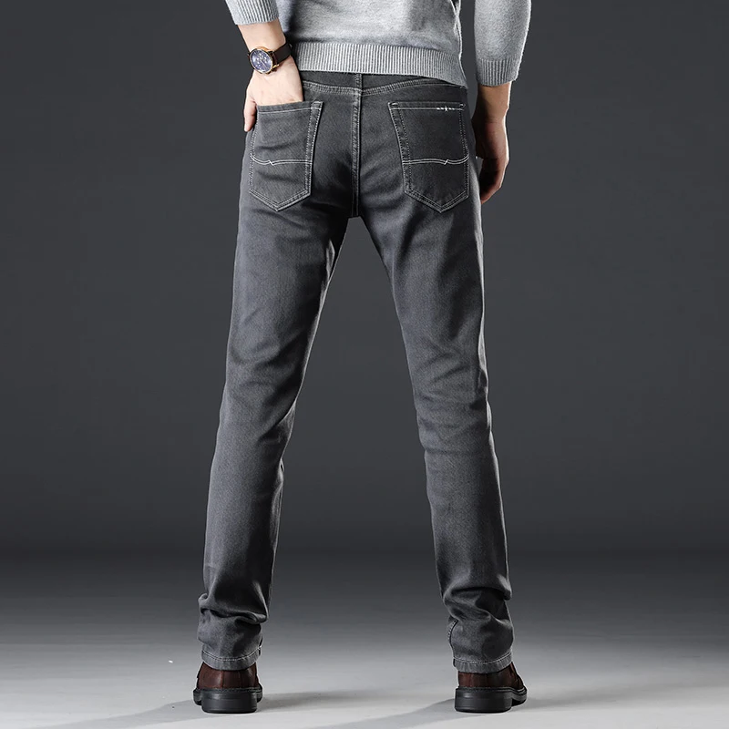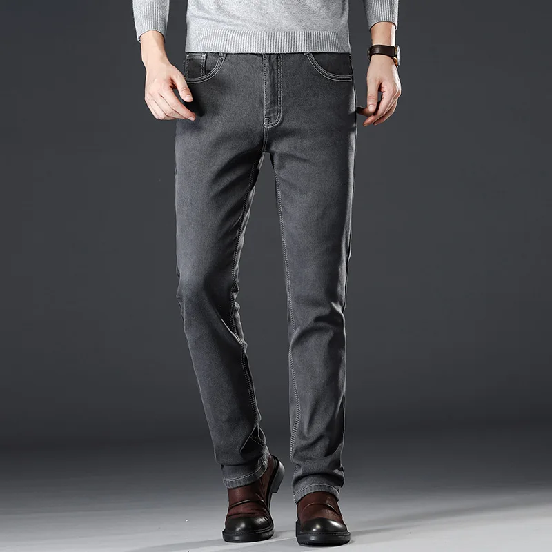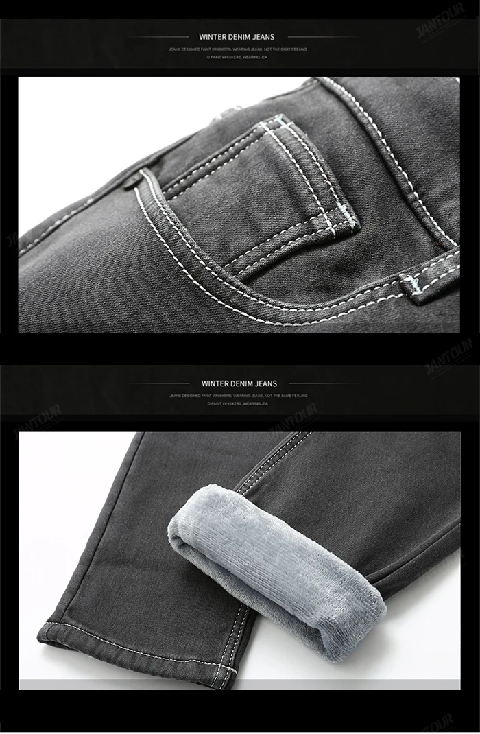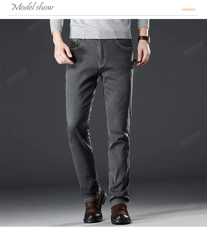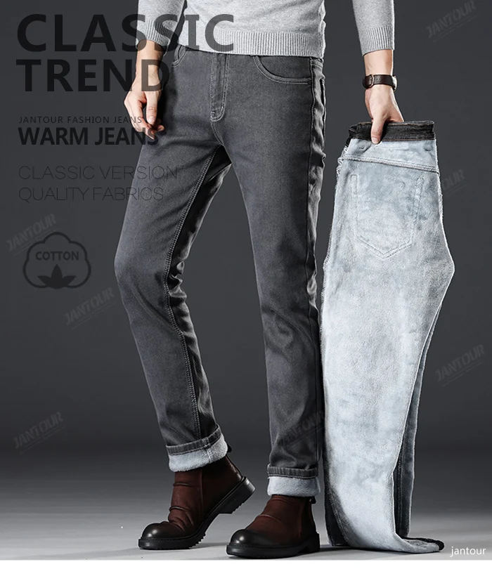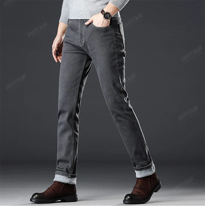 Jantour 2022 новые зимние мужские утепленные кашемировые деловые повседневные Стрейчевые джинсы из денима теплые джинсы классические модные серые
