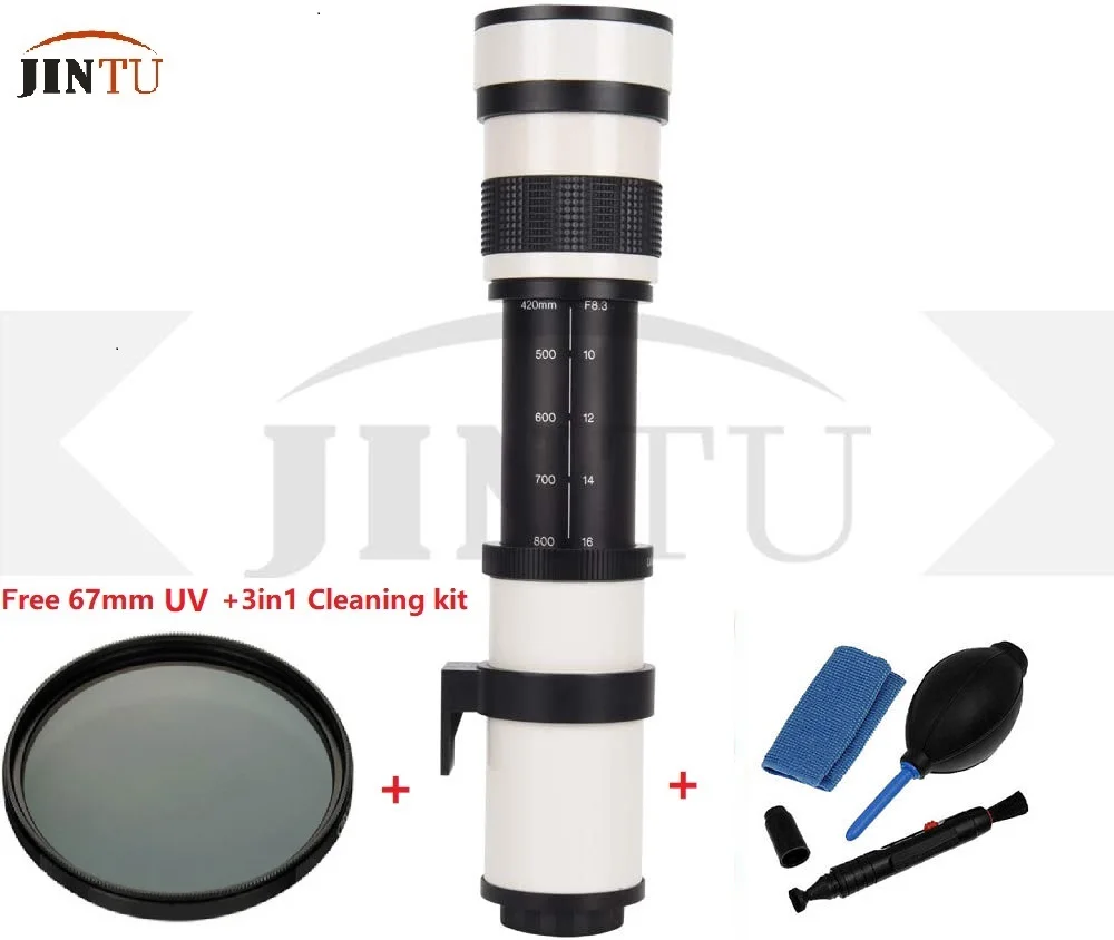 Особенности★JINTU 420-800 мм ручной фокус Супер телеобъектив, с сильным полным металлическим корпусом, маленький размер 10,6x3,5x3,5 дюймов, светильник весом 700 г = 1.8LB, легко носить с собой в любом месте.★Ультра высокое качество изображения. С японским дизайном, многослойное низкодисперсионное стекло. Поверхность корпуса объектива окисляется, чтобы предотвратить потерю краски и износостойкость.★Идеально подходит для дикой природы или фотографа, который хочет быть скрытым во время фотографирования объекта. Лучший выбор для маленьких или отдаленных предметов, когда большие тяжелые призы непрактичны, начиная от птиц и диких животных, через спорт, до Луны и тому подобное★2 года гарантии JINTU. Объектив универсален, только что установленный дополнительный Т-образный адаптер подходит для различных брендов камеры.★Крепление камеры: E-Mount SonyDSLR (адаптер T-mount для камеры, не беспокойтесь)