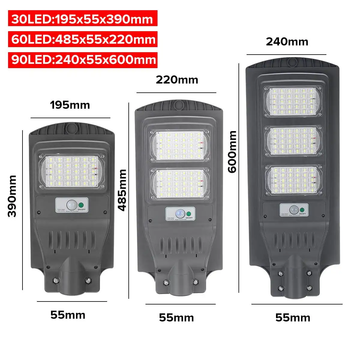 90 светодиодов: 240x55x600мм